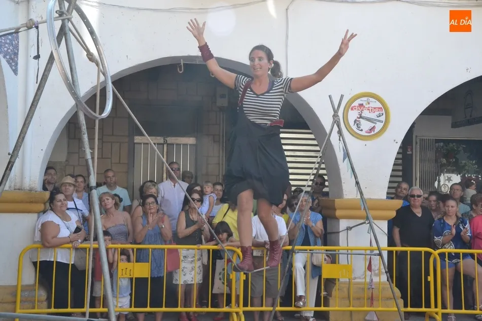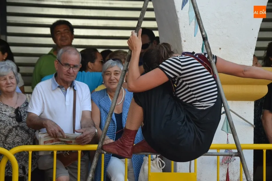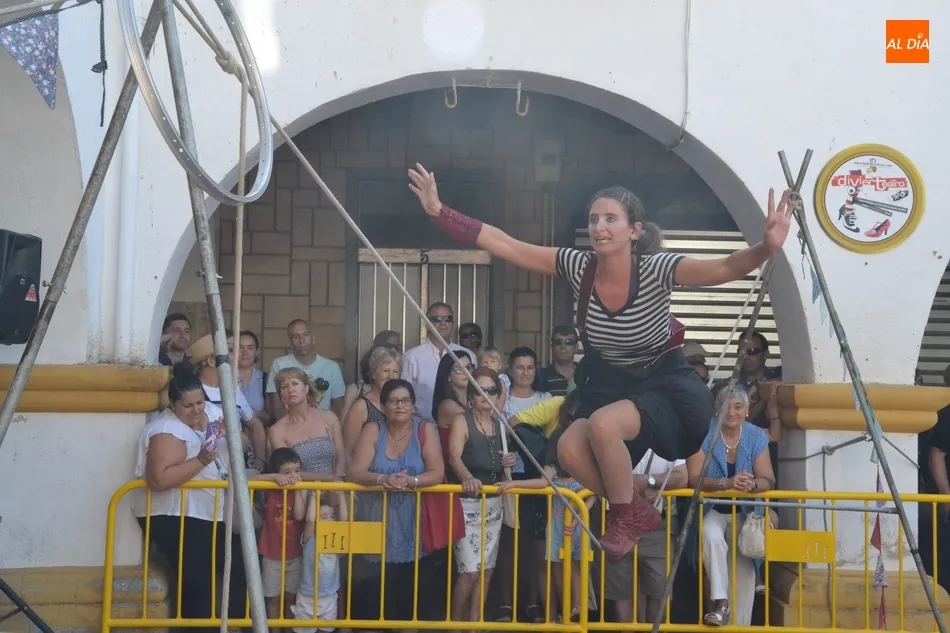 Como novedad respecto a las dos primeras jornadas del programa, el Divierteatro acogió un pase de rOdandO, el espectáculo de la argentina Celeste Zalloechevarría a través de su compañía Espuma Bruma que también se podrá ver a última hora de la tarde del viernes en el Parque de La Florida. Como se puede ver en las imágenes, se trata de un espectáculo de carácter circense donde la protagonista estuvo caminando por la cuerda floja además de interactuar con los niños asistentes.