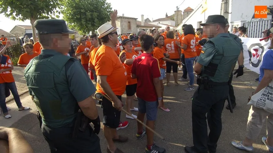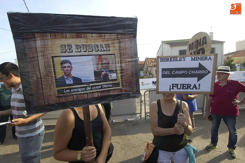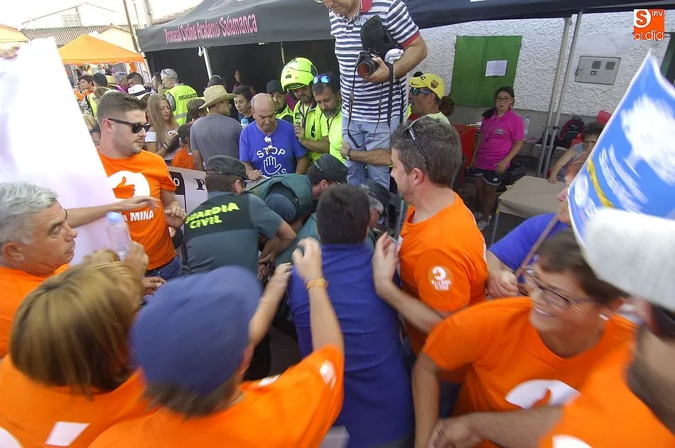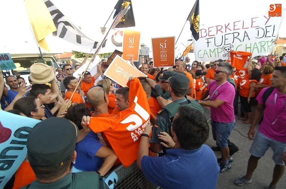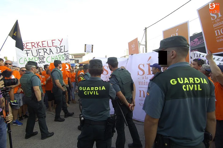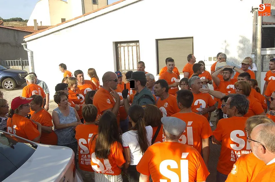 De las palabras estuvo a punto de pasarse a las manos, pero la rápida intervención de la Guardia Civil conseguía aplacar los ánimos de unos y otros, que se enfrentaron verbalmente subiendo de tono a medida que pasaban los minutos. Y es que la tensión iba creciendo por momentos pues los anti mina trataban de tapar la publicidad de Berkeley Minera España ante la resistencia de los partidarios de la mina. Sin embargo, al final la Benemérita tenía que intervenir porque ambos bandos se volvían a acalorar.