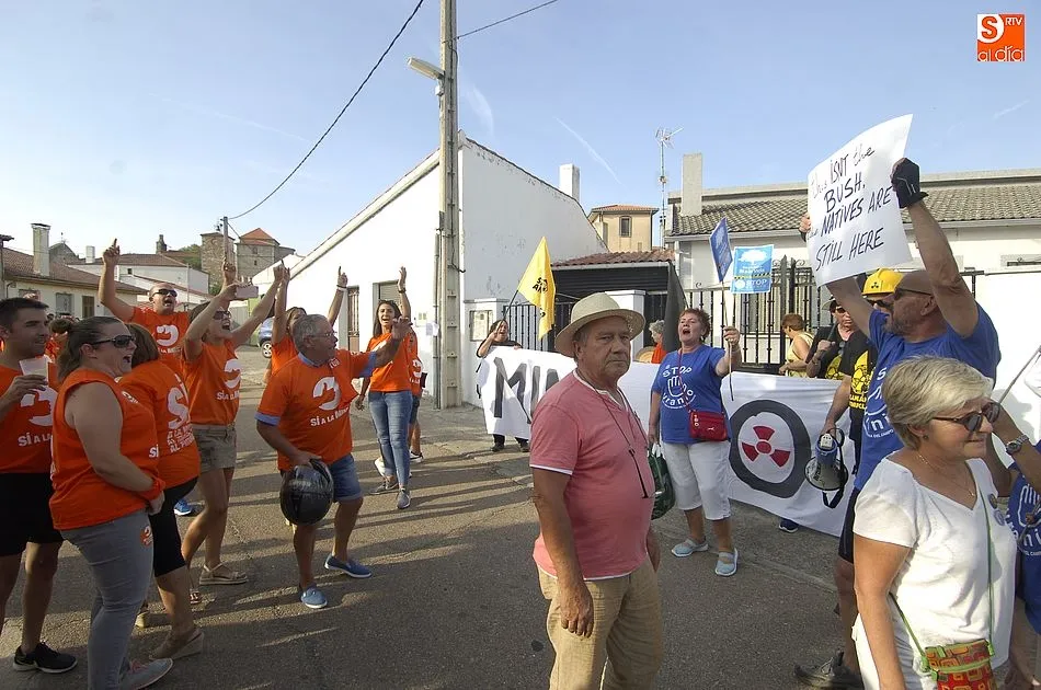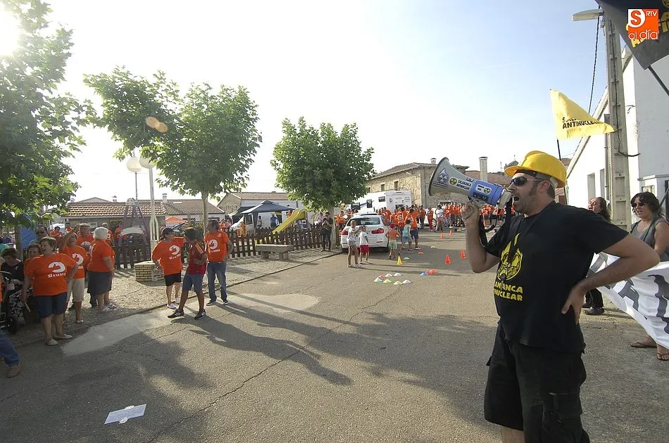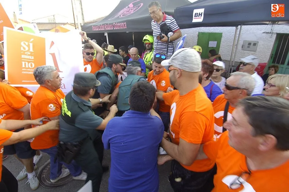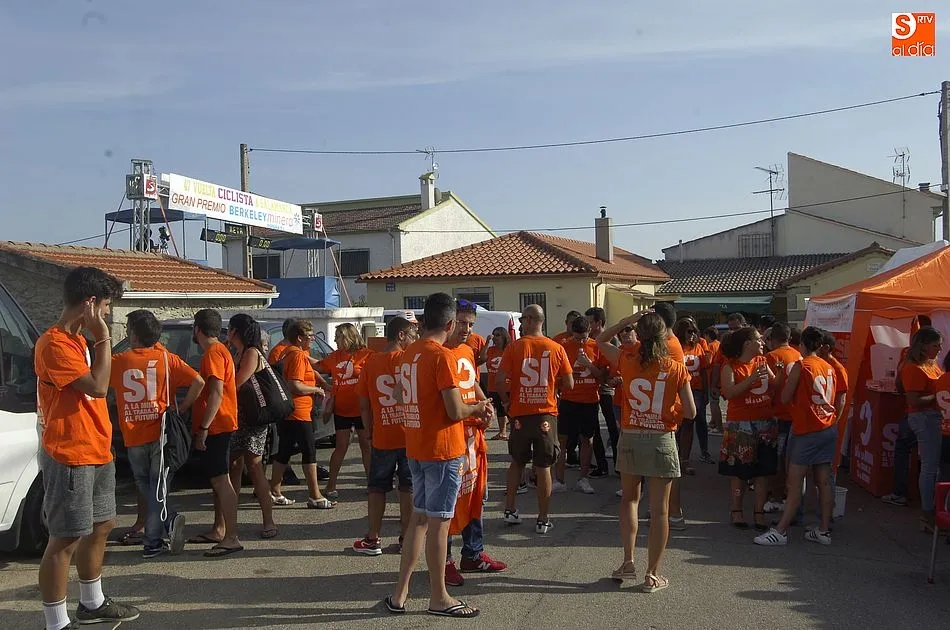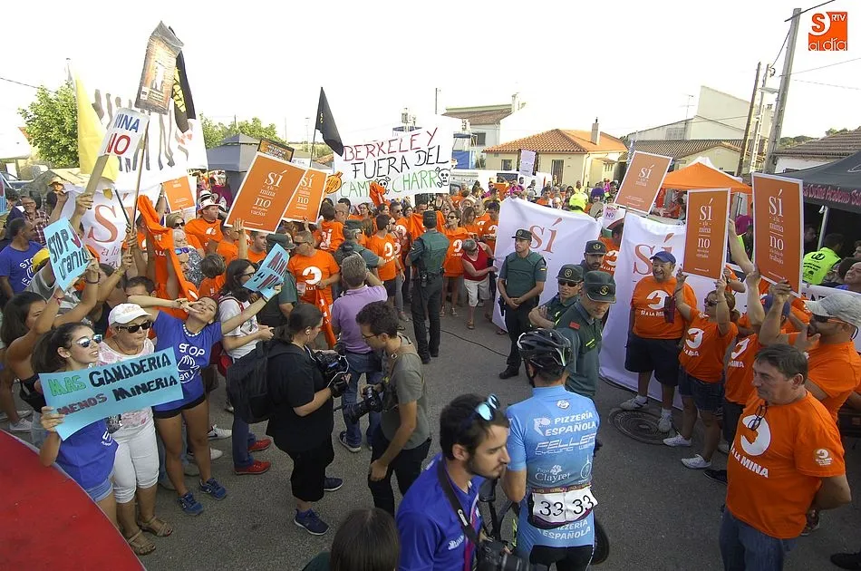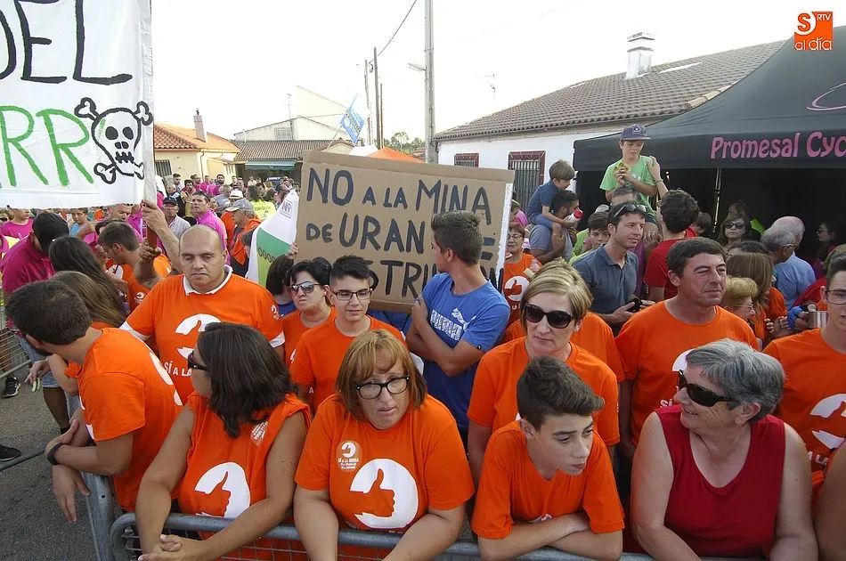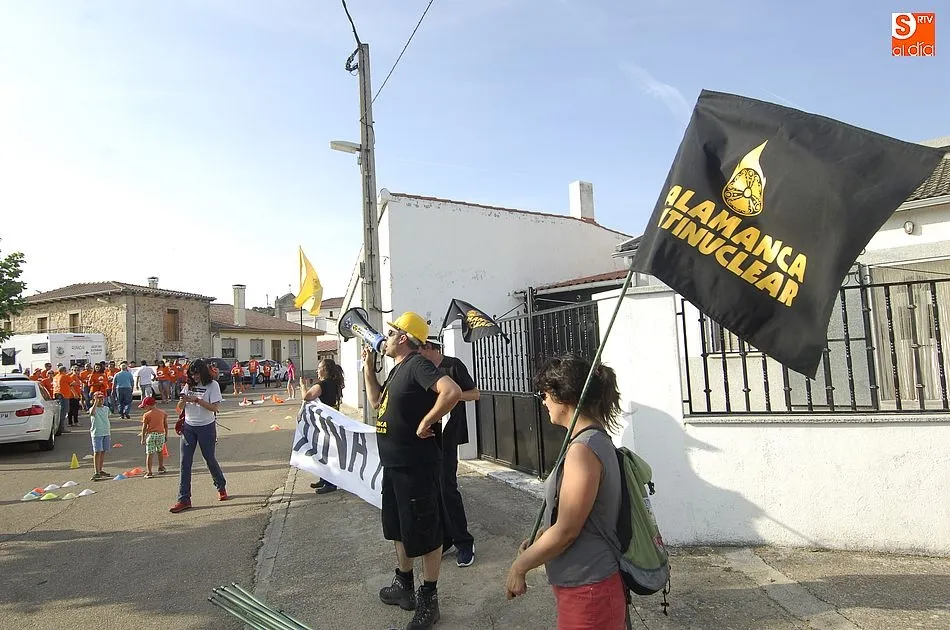 A eso de las siete de la tarde empezaron a llegar los ?anti nucleares? o la plataforma en contra de Berkeley, fue entonces cuando unos a cada lado de la plaza expresaron a gritos sus pareceres y versiones totalmente diferentes en contra y a favor de la mina, viviendose momentos de tensión minutos ante de la llegada de la segunda etapa de la Vuelta Ciclista a Salamanca,