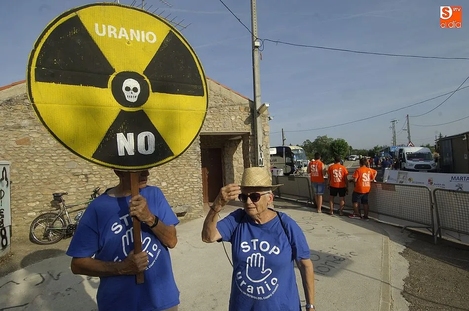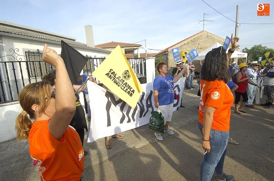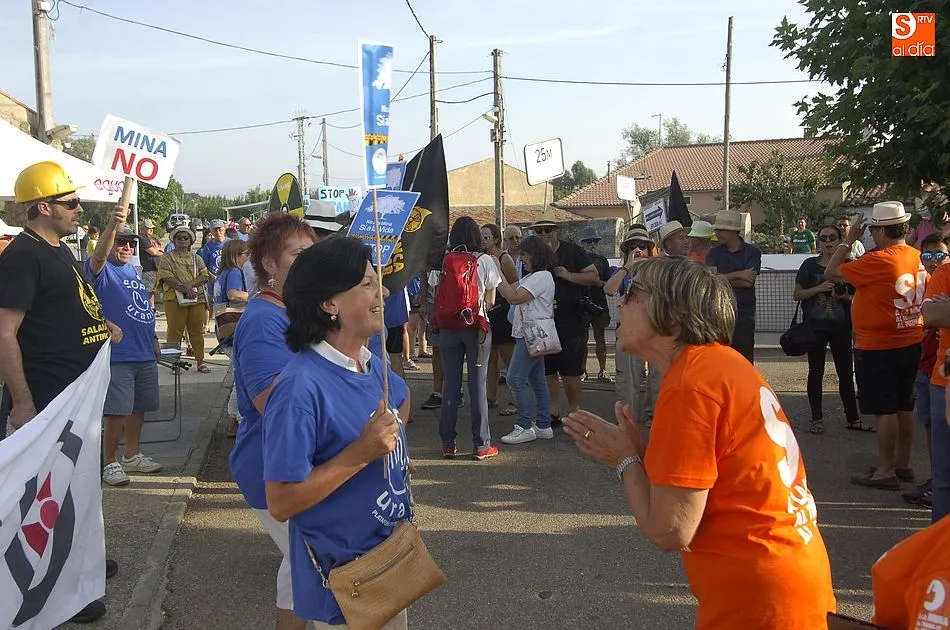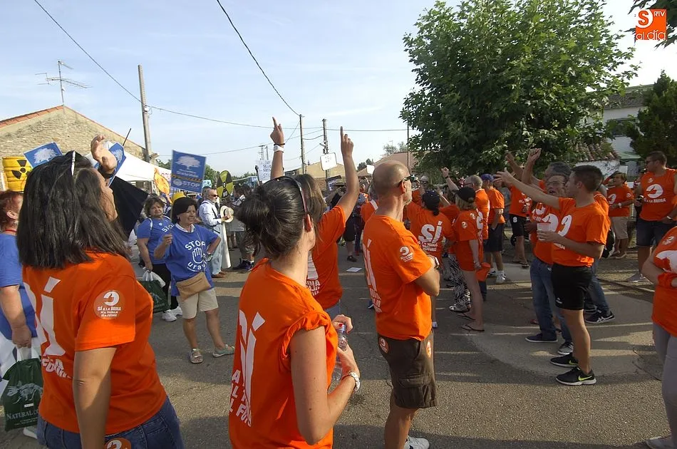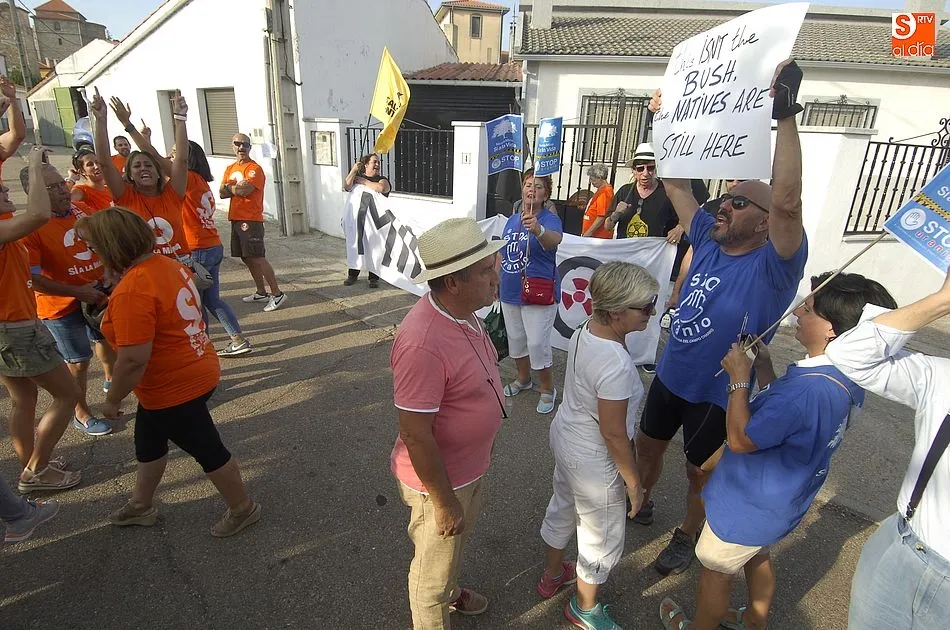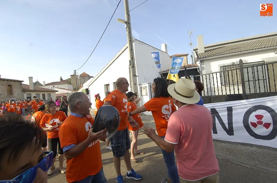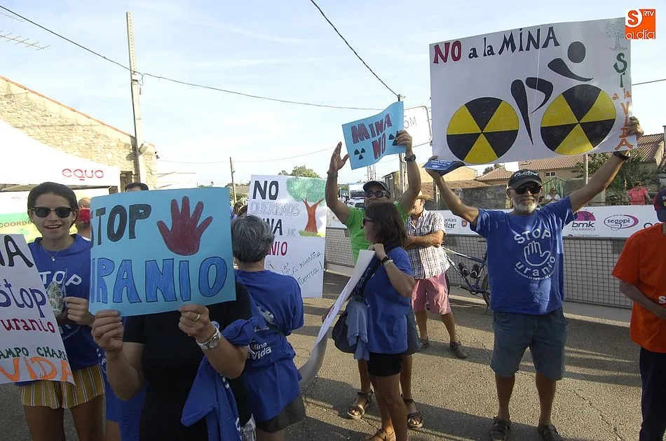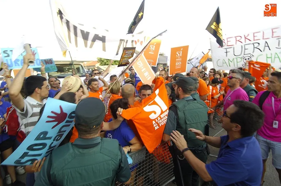 A eso de las siete de la tarde empezaron a llegar los ?anti nucleares? o la plataforma en contra de Berkeley, fue entonces cuando unos a cada lado de la plaza expresaron a gritos sus pareceres y versiones totalmente diferentes en contra y a favor de la mina, viviendose momentos de tensión minutos ante de la llegada de la segunda etapa de la Vuelta Ciclista a Salamanca,