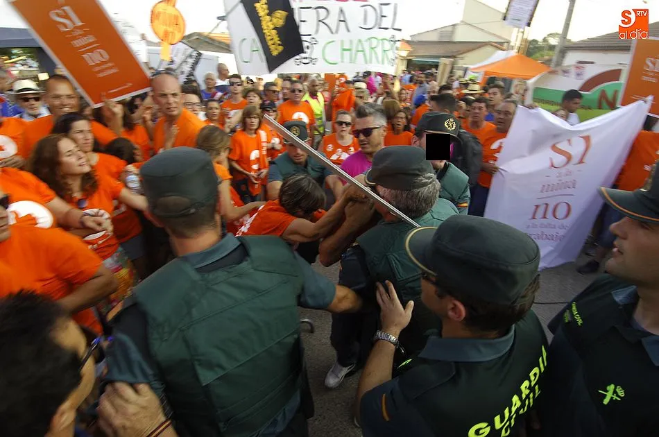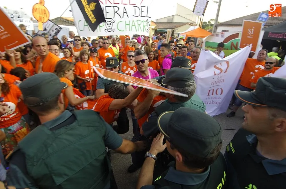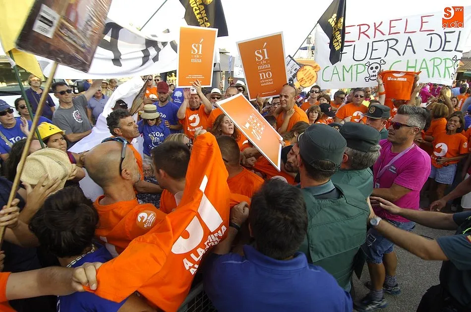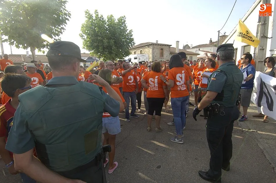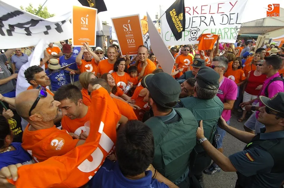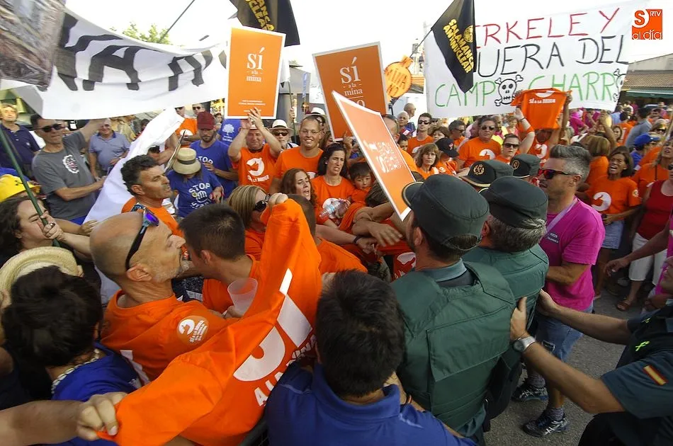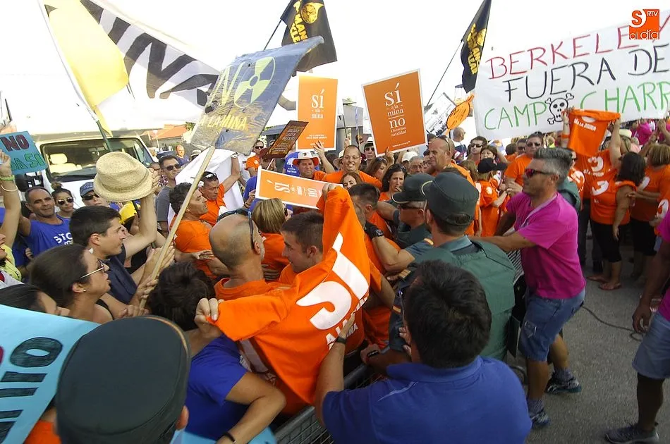 Todo transcurria con normalidad, los simpatizantes de la mina de uranio, habían tenido una fiesta, y se lo estaban pasando a lo grande en un día familiar con sus reivindicativas camisetas amarillas de ?Si a la mina?.