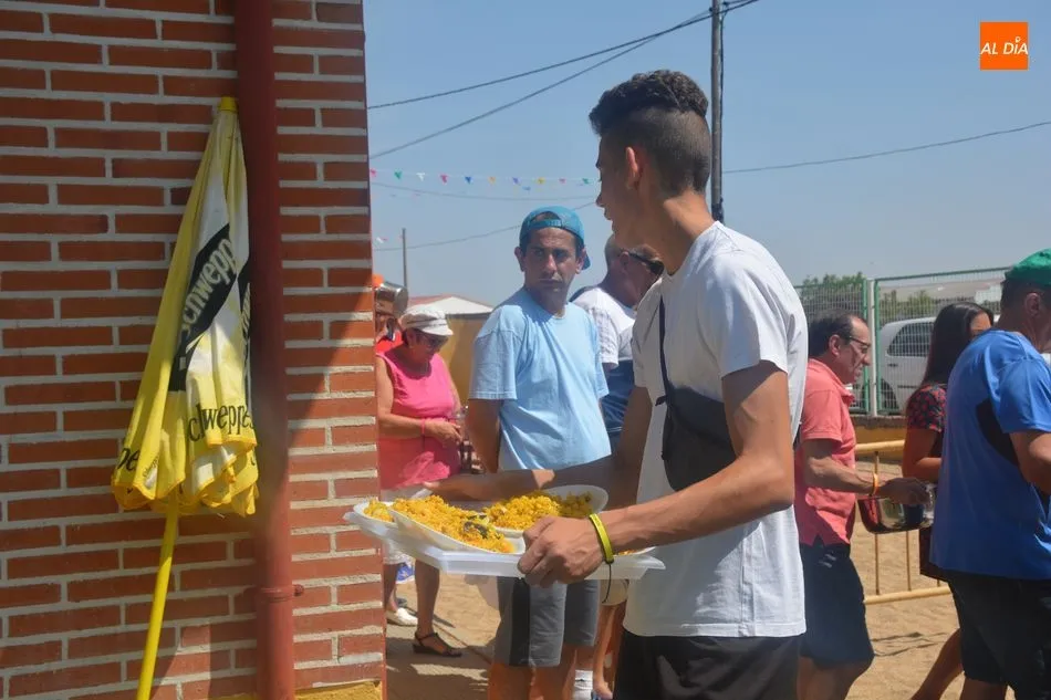 Este viernes, 24 de agosto, vecinos y allegados de Gomecello han participado este medio día en la comida multitudinaria en la que han disfrutado de la compañía de familiares y amigos. Después de que sus fiestas comenzarán ayer con los fuegos artificiales y la verbena, la gente ha decidido reponer fuerzas con una deliciosa paella y animarse para participar más tarde en la fiesta del agua y la color ?Holly Party?. Con el atardecer, llega el humor de ?Cómicos Terentente? a las 19:00 h y la orquesta ?Suavecito? para animar la noche.