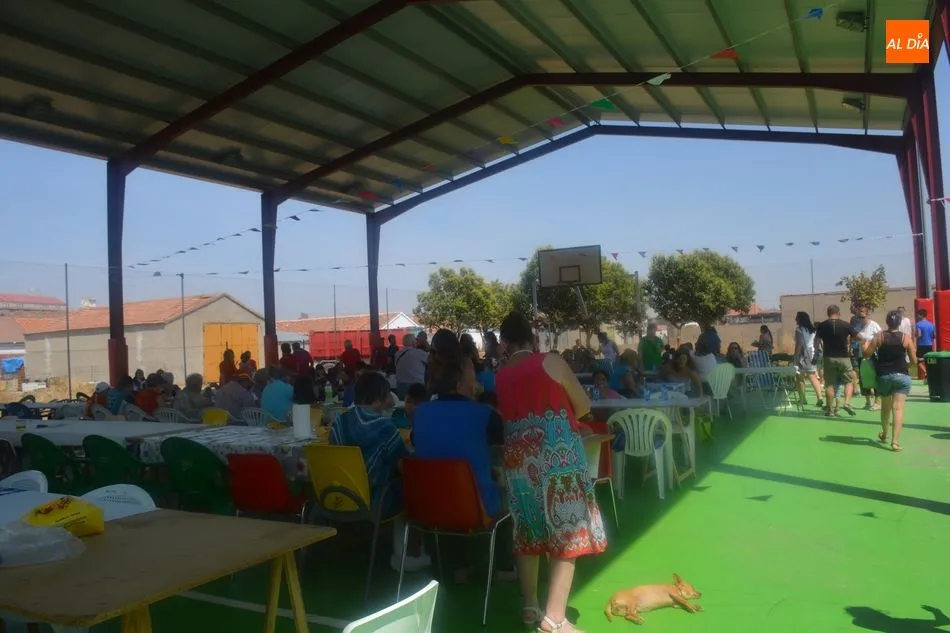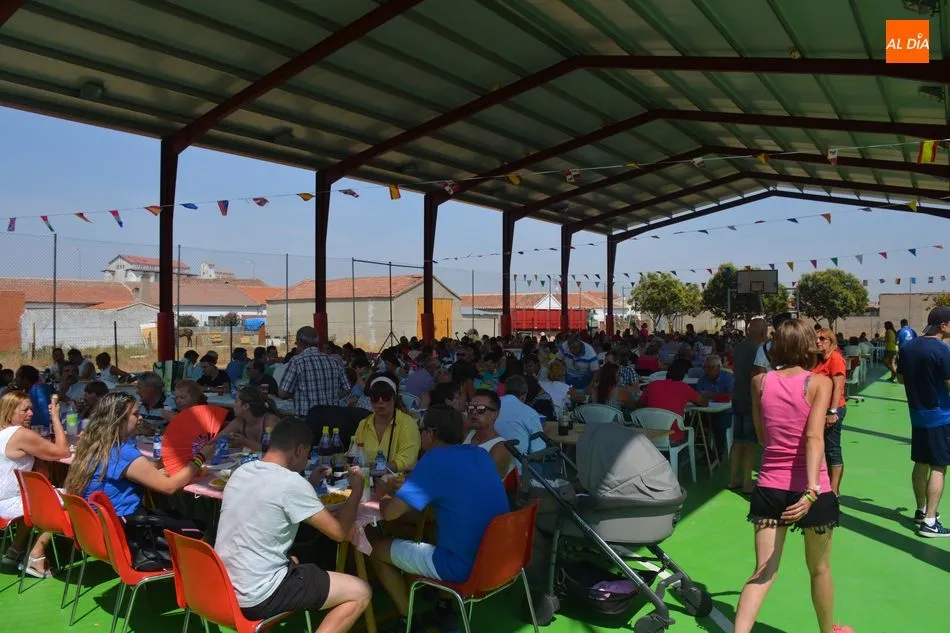 Vecinos y allegados del municipio de Gomecello han participado este medio día en la comida multitudinaria en la que han disfrutado de la compañía de familiares y amigos