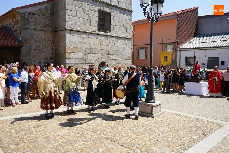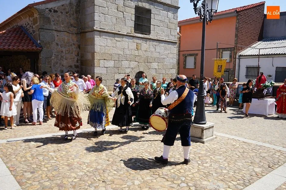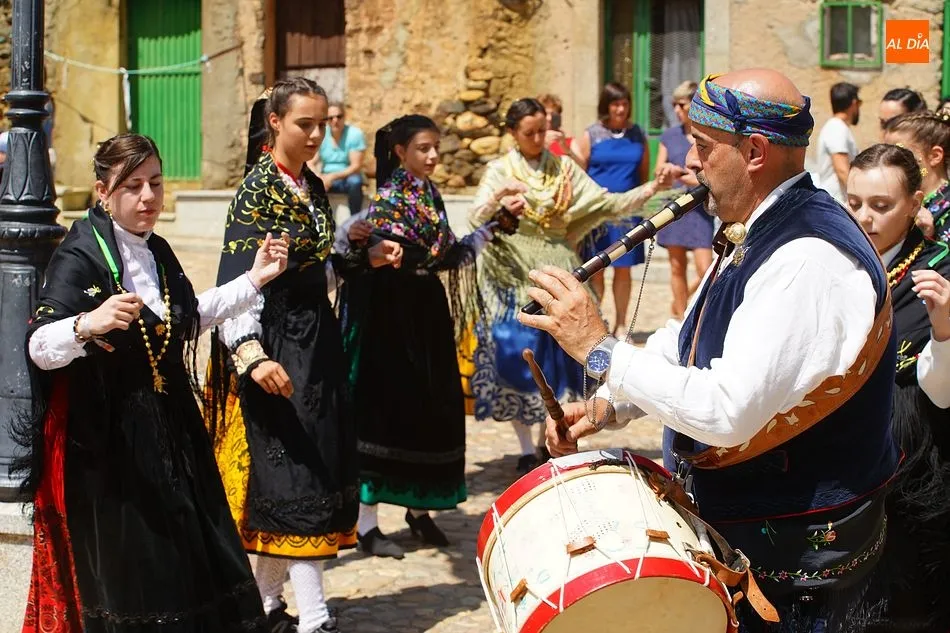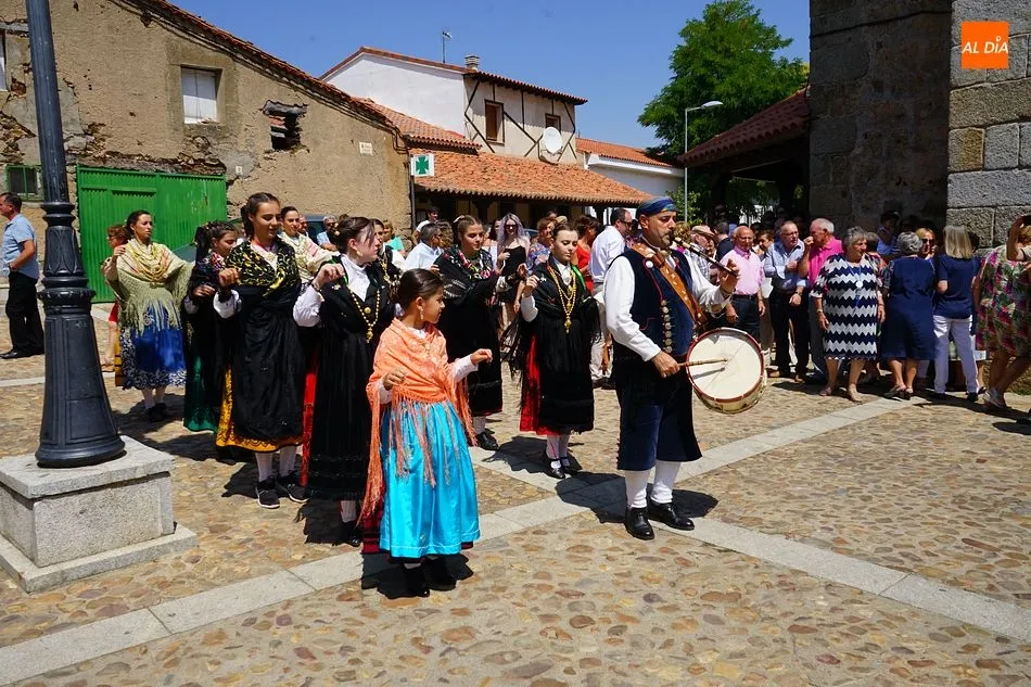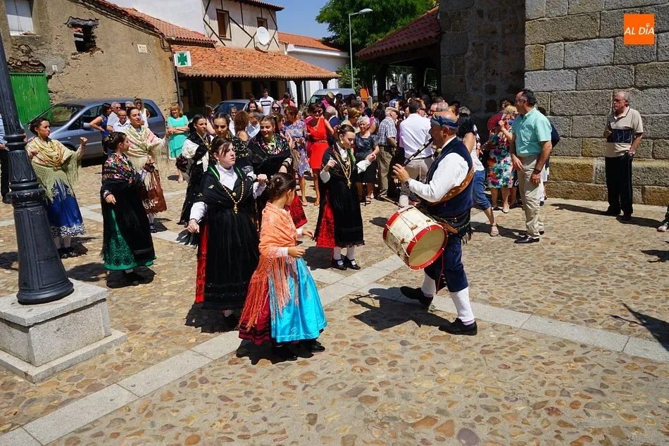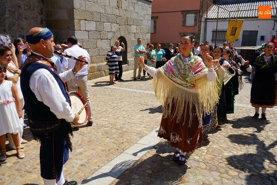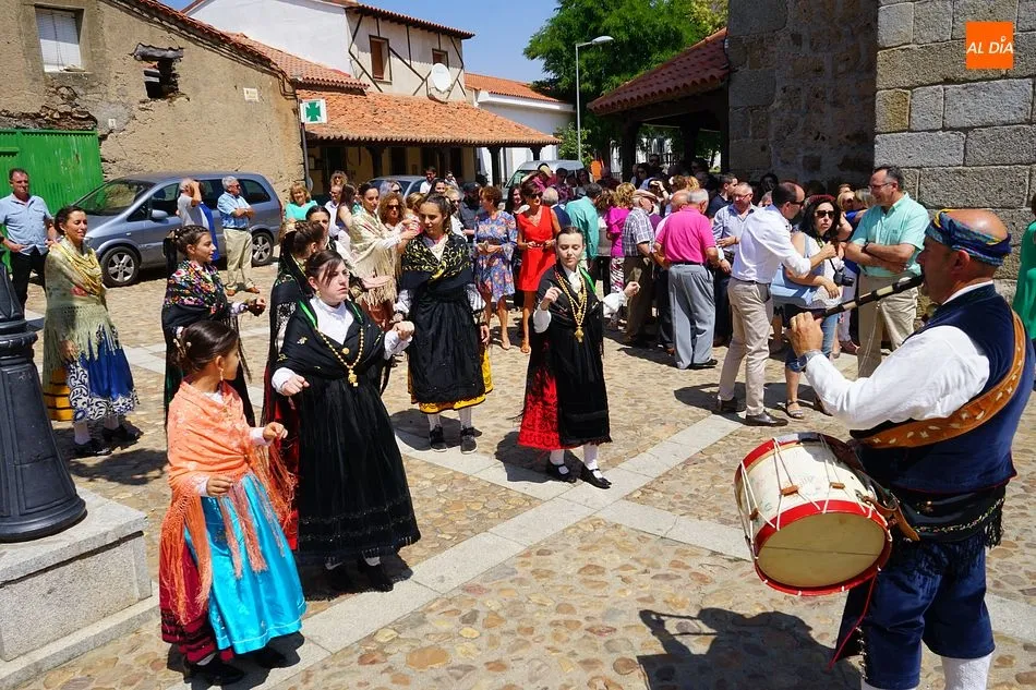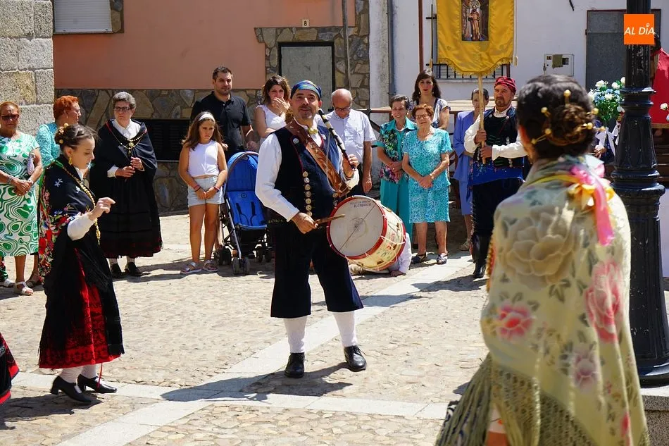 Los presentes disfrutaron de la actuación de las jóvenes del pueblo, que bailaron ataviadas con trajes tradicionales al son del tamborilero Agustín García.
