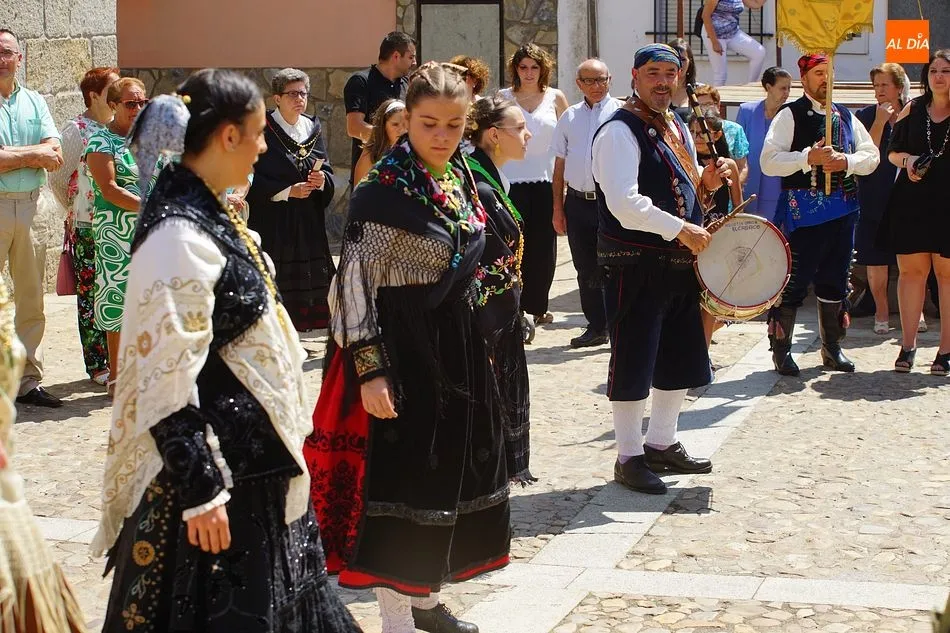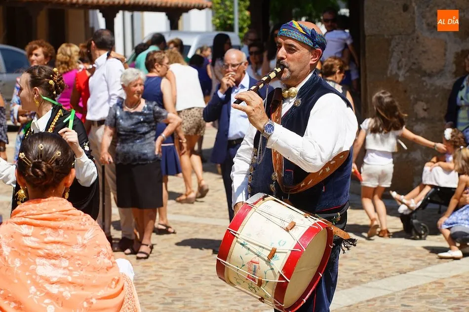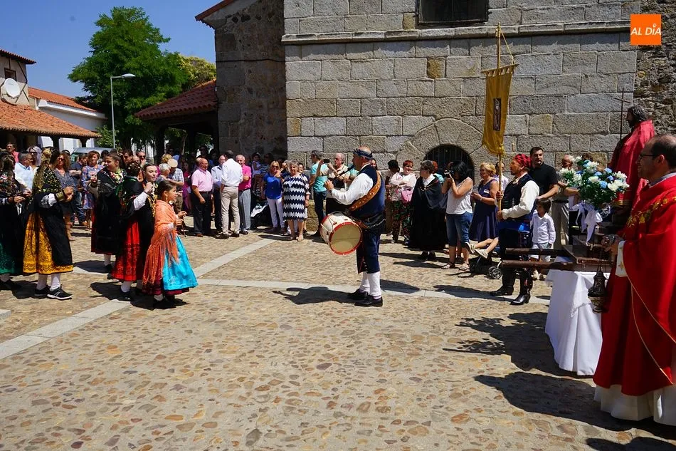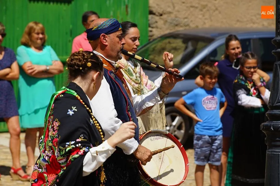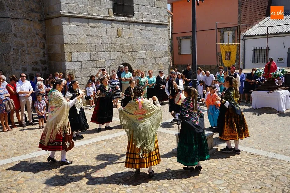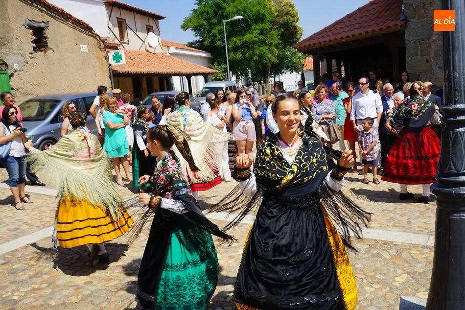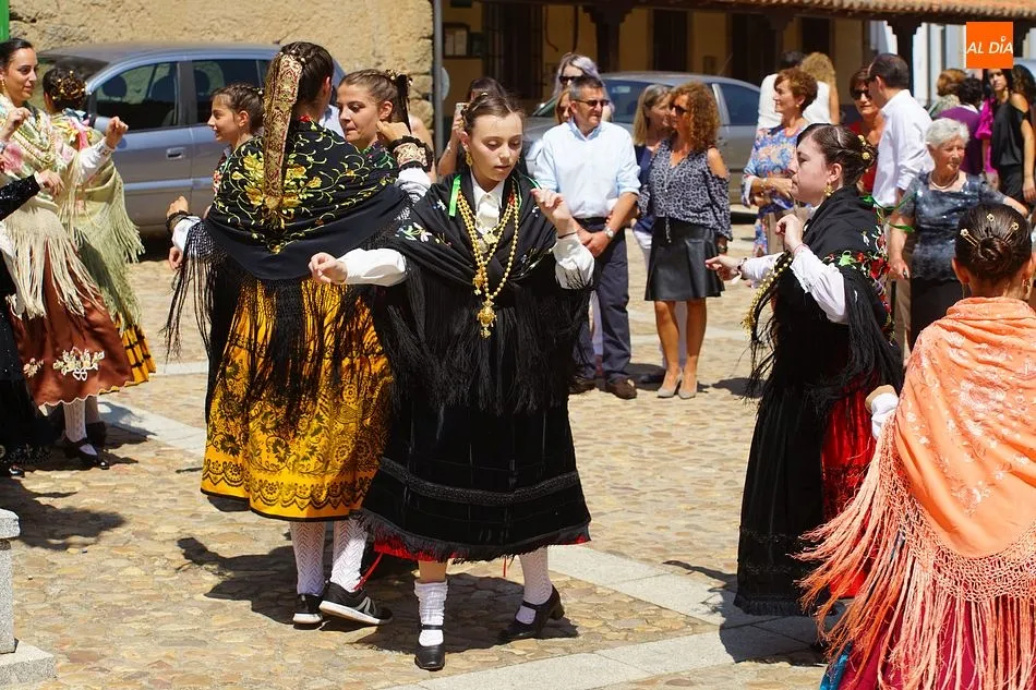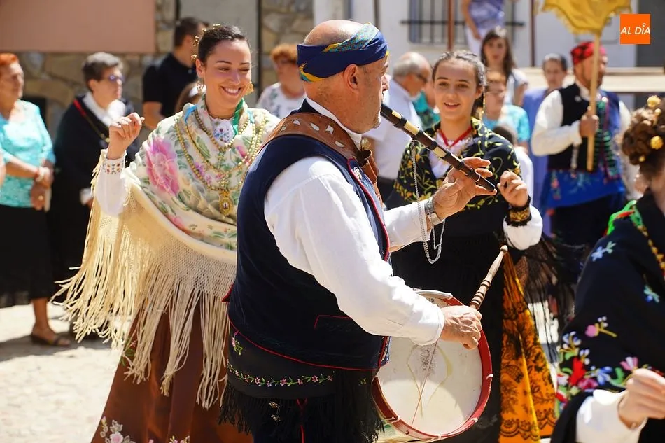 Los presentes disfrutaron de la actuación de las jóvenes del pueblo, que bailaron ataviadas con trajes tradicionales al son del tamborilero Agustín García.