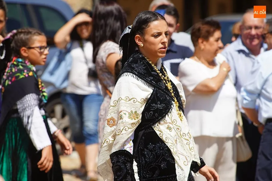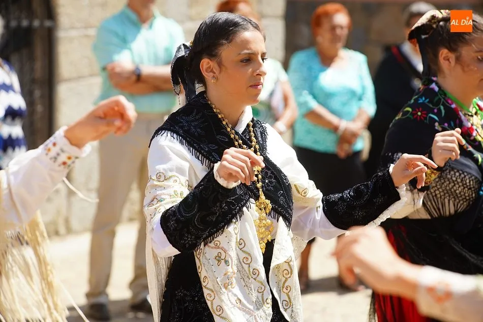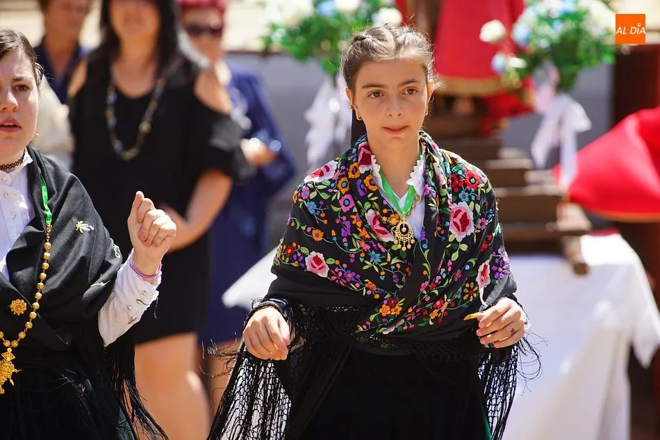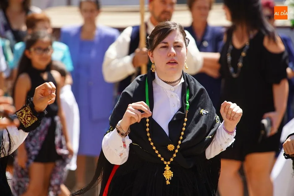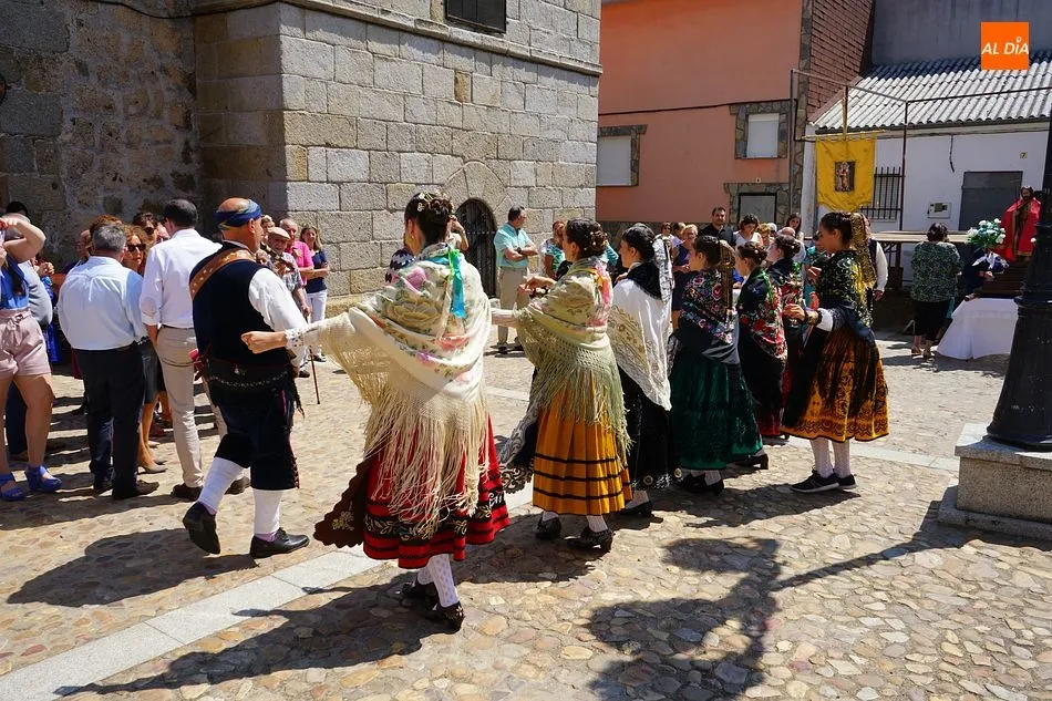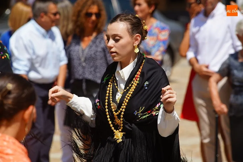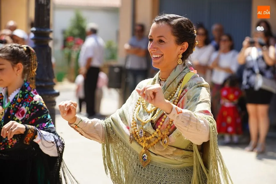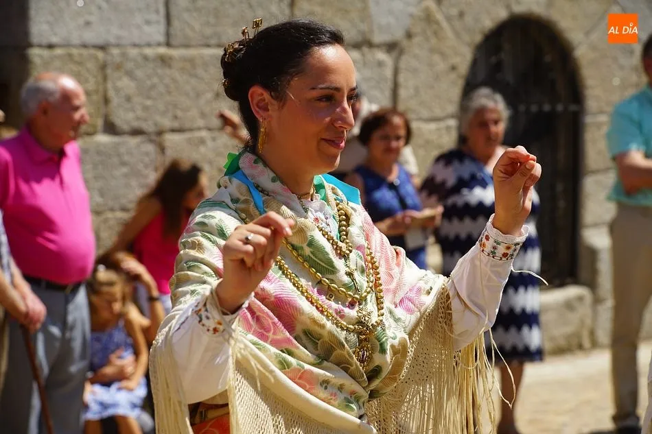 Los presentes disfrutaron de la actuación de las jóvenes del pueblo, que bailaron ataviadas con trajes tradicionales al son del tamborilero Agustín García.