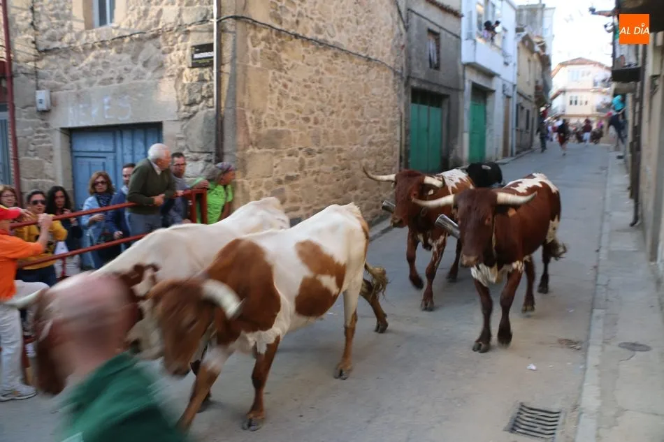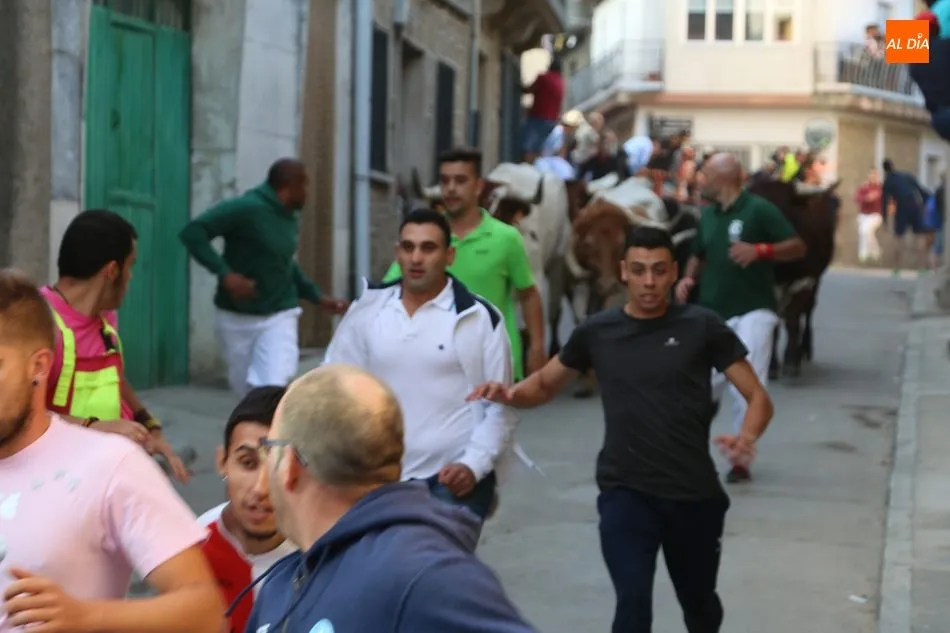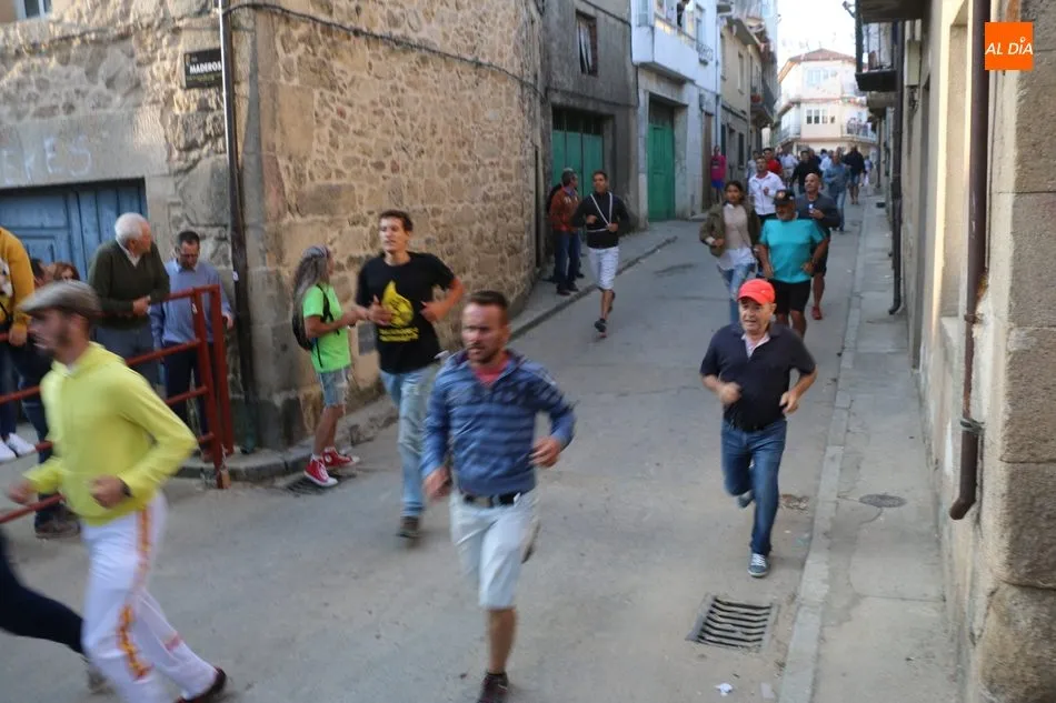 Las peñas, al son de la charanga la Escala 2.0, fueron las animadoras del primer encierro de las fiestas de Aldeadávila, festejo que se desarrolló rápido y sin incidentes, con una carrera fulgurante a la entrada de la calle Mimbreros.