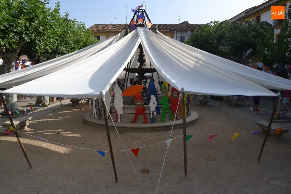 Este año, la sesión de fotos fue un poco ?diferente? a lo habitual, debido a la gran ?jaima? que ha envuelto la fuente de la Plazuela del Buen Alcalde, por cuyo vaso se solían repartir los miembros del Divierteatro. Como alternativa, se optó por colocar unos cuantos bancos para establecer varias alturas.