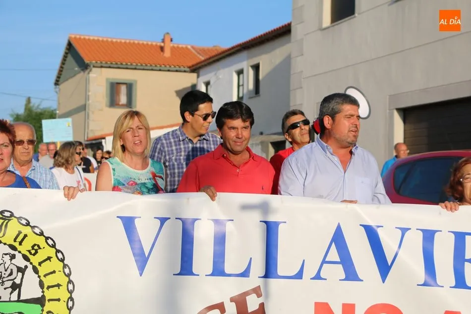 ?No a la mina, sí a la vida?, ?El pueblo unido jamás será vencido?. Villavieja unida jamás será vencida?, o ya en la Plaza de Villavieja, en apoyo a su alcalde, ?Todos con Jorge?, fueron algunos de los lemas coreados en el desarrollo de la manifestación entre el antiguo frontón de pelota y la Plaza Mayor de Villavieja.