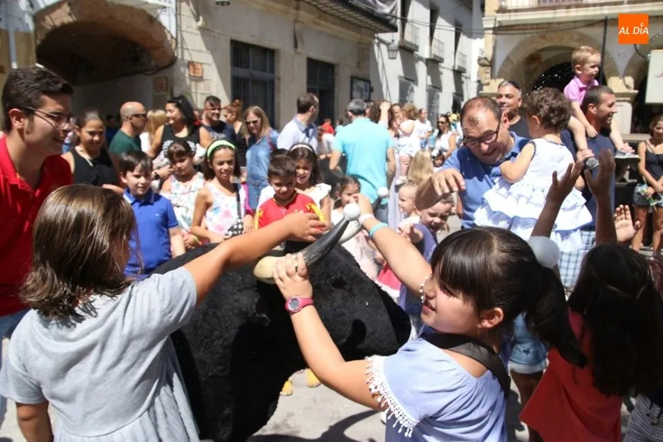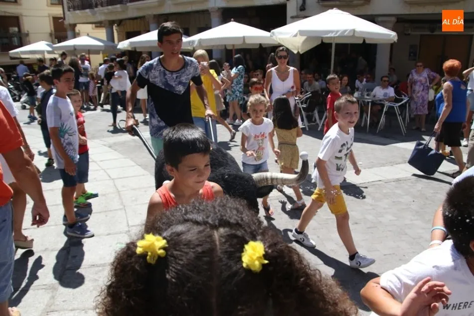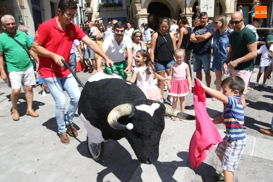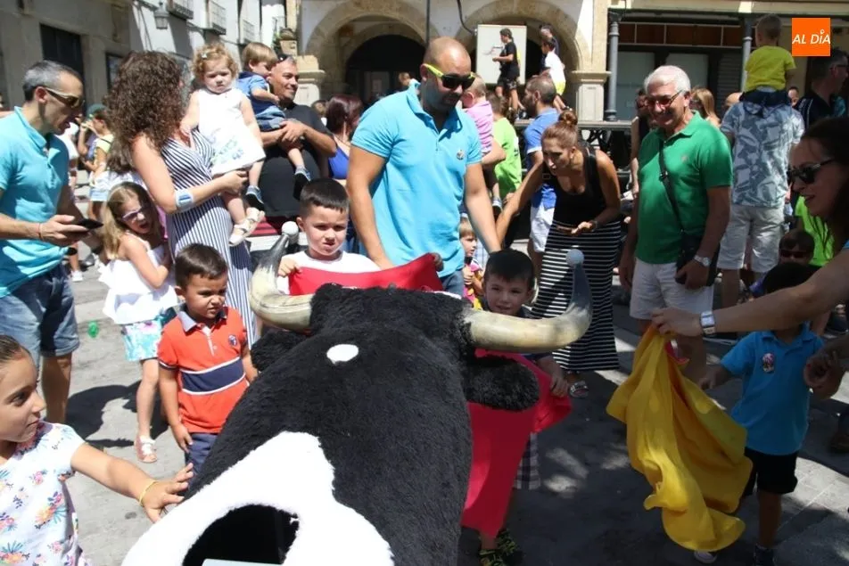 El encierro ecológico infantil, que transcurrió entre el coso taurino y la Plaza Mayor de Alba de Tormes, tuvo una gran aceptación y cada vez más niños hacen acto de presencia con capotes y muletas. Posteriormente, hicieron aparición por la puerta del ayuntamiento los históricos gigantes y cabezudos, que gozan siempre de una gran acogida entre el público infantil.