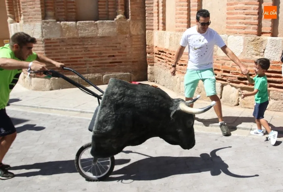 Tras el encierro y la capea matinal, la plaza de toros de Alba de Tormes se llenó una vez más de niños y niñas dispuestos a recibir a los carretones taurinos, empujados por miembros de la Asociación Taurina 15 de Octubre.