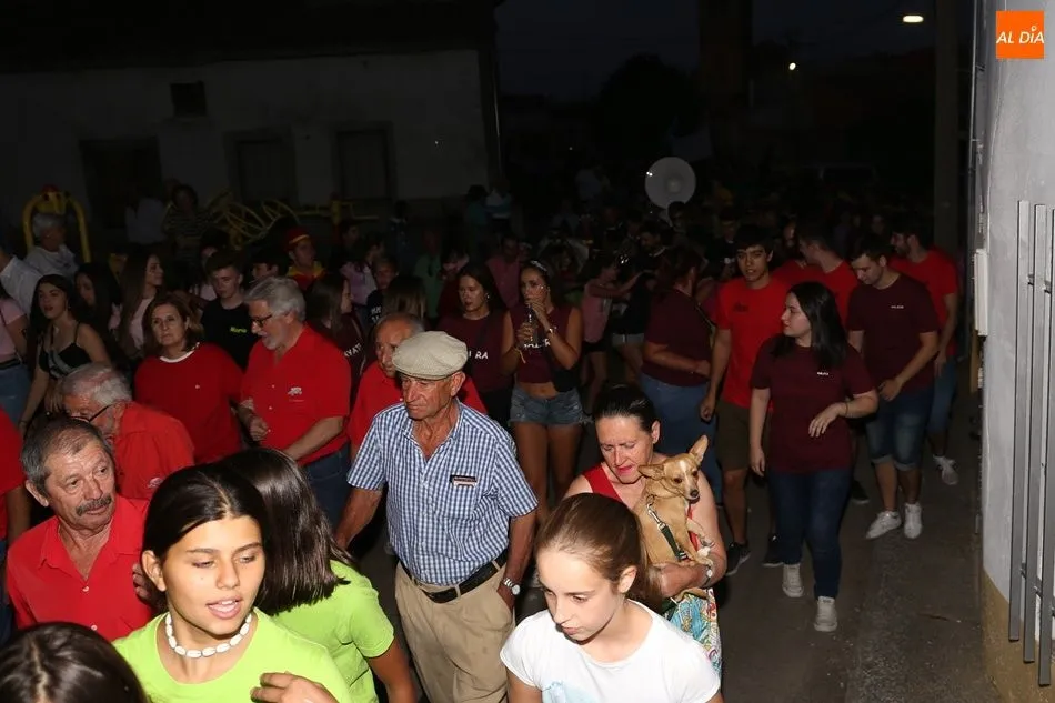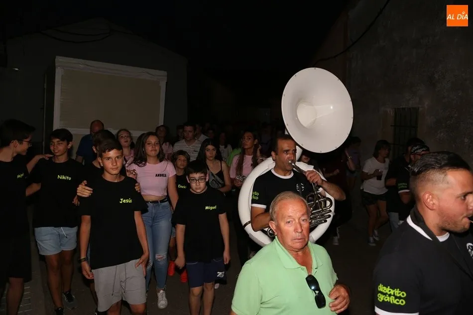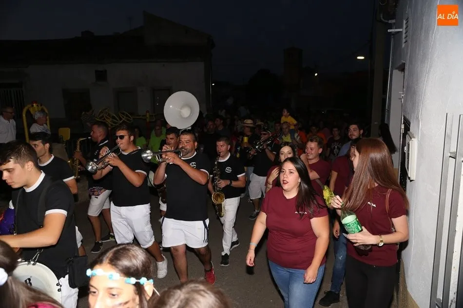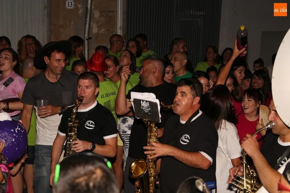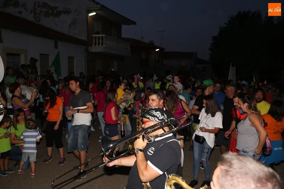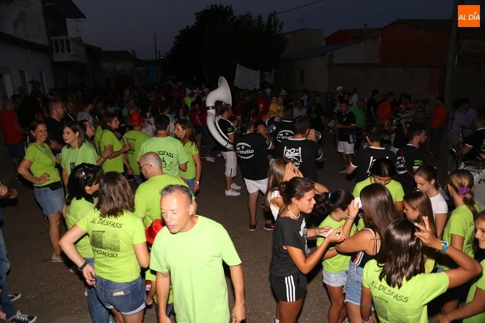 El desfile de peñas y el pregón han abierto este domingo a lo grande las fiestas de El Pedroso de la Armuña en honor a San Pedro. La charanga El Meneíto ha hecho bailar y cantar a pequeños y mayores. Los integrantes de la charanga, que lleva veinticuatro años tocando en las fiestas de El Pedroso, han pronunciado el pregón ante los vecinos. Finalizaron el pregón como mejor saben: haciendo cantar a voz en grito y saltar a toda la plaza.