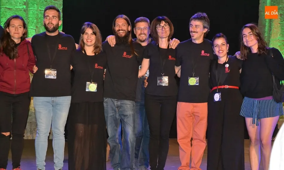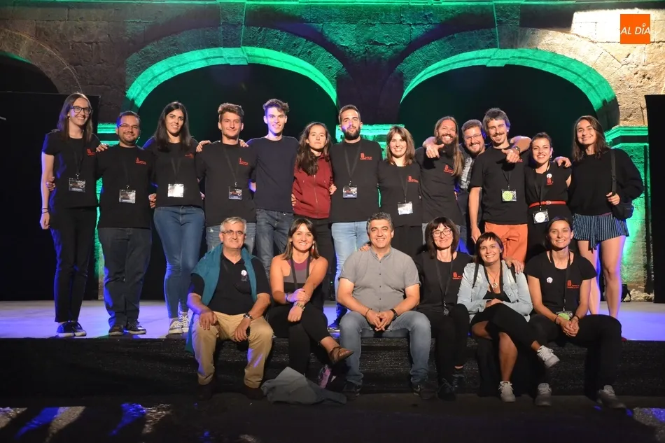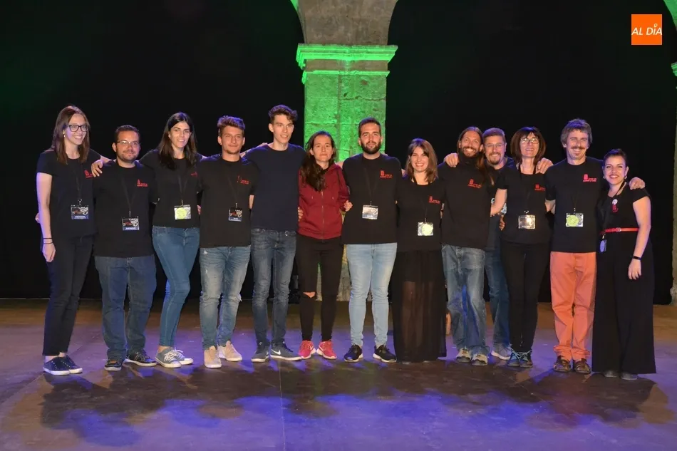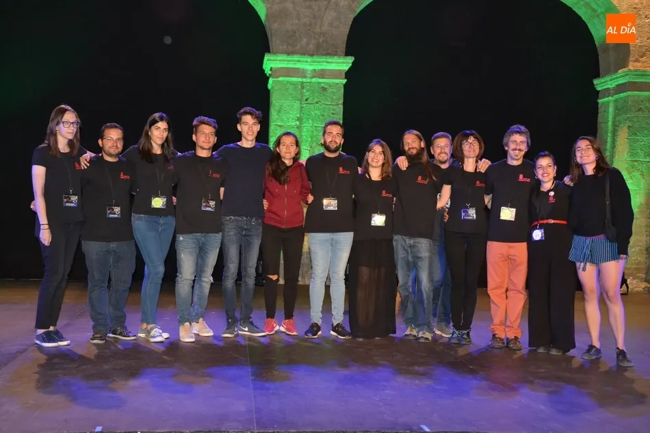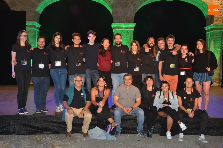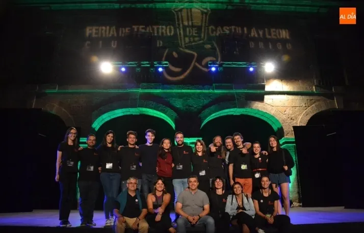 En esa foto con el director Manuel Jesús González al frente están el ideólogo de la Feria, Juan Carlos Sánchez; la responsable del Divierteatro, Miriam Hernández; las integrantes de la Oficina de la Feria, así como las personas del equipo que han tenido la función de polivalentes encargándose de la entrada a los recintos, controlando al público en los espectáculos de calle, o ejerciendo como auxiliares de sala.