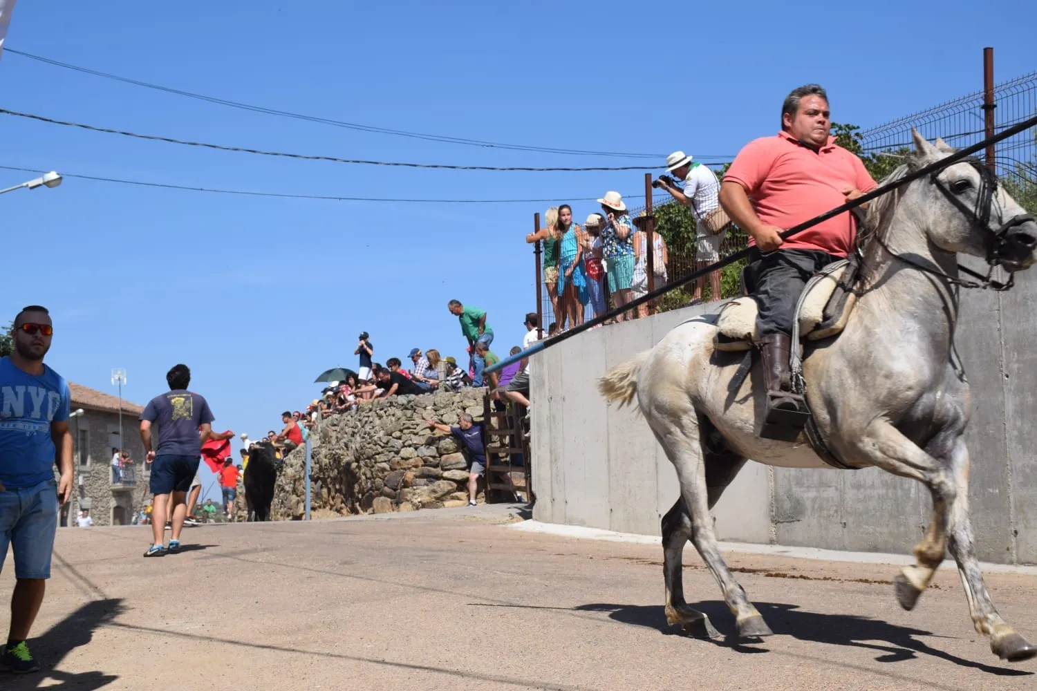Pese a que la mañana estaba repleta de eventos taurinos a caballo en la comarca (también hubo encierros en Fuenteguinaldo y Villasrubias), la cita en Villar de Ciervo contó con una amplia presencia de público para presenciar cómo los caballistas condujeron hasta el núcleo urbano los novillos de la ganadería de Monteverde de Don Manolo Gimeno. El encierro, que entró bastante disgregado, contó también con la intervención de varios corredores a pie, que se animaron a correr delante de los astados en los huecos que tuvieron.