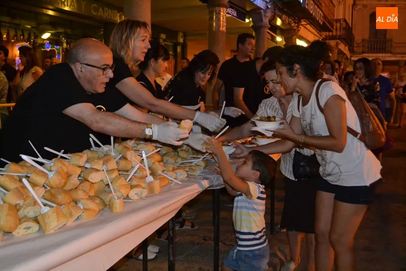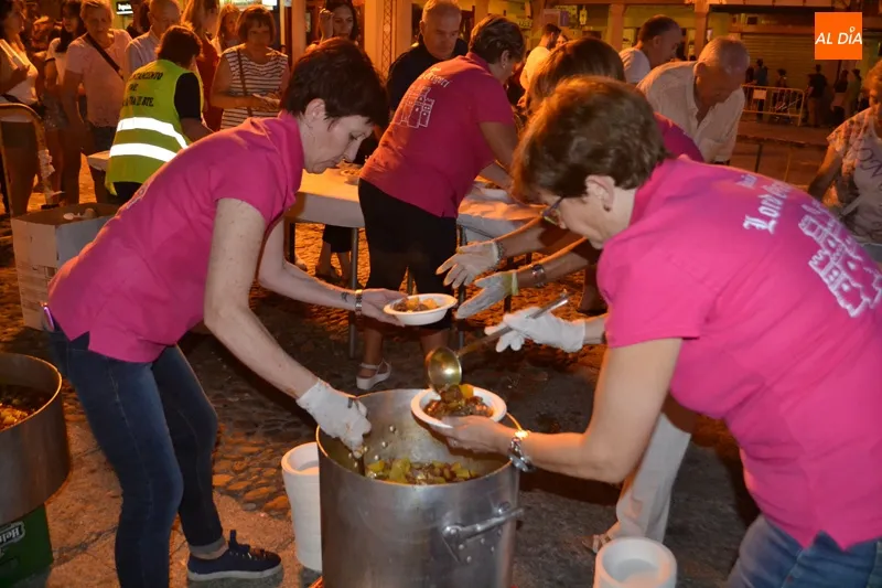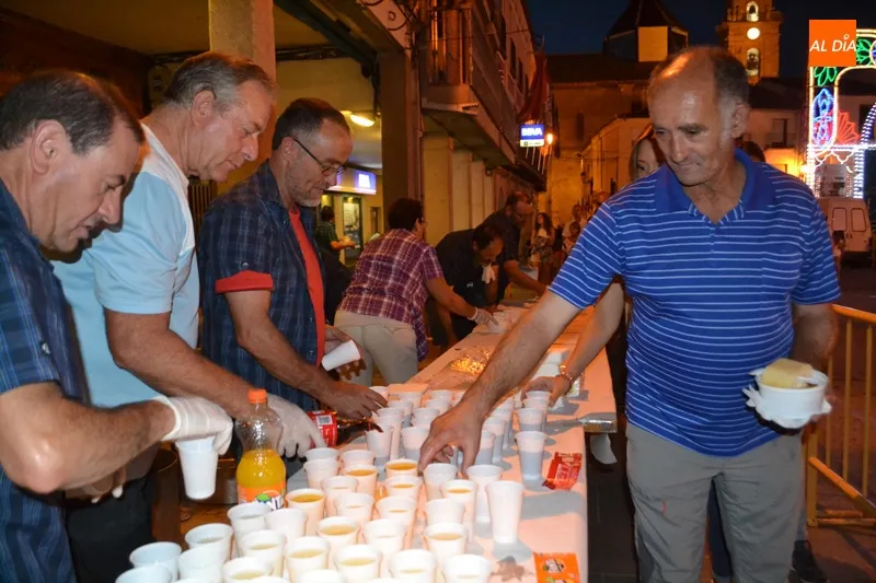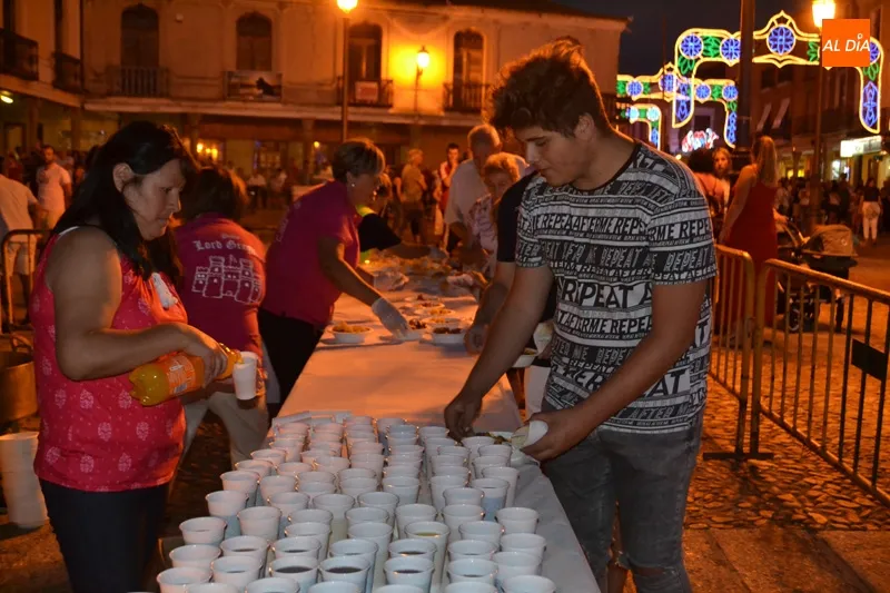 Una vez llegado el guiso se ponía en marcha el gran equipo voluntario en las diferentes mesas dispuestas para dar comienzo al reparto, que ponía su punto y final con 4000 raciones servidas, con su bebida y su pan correspondientes.