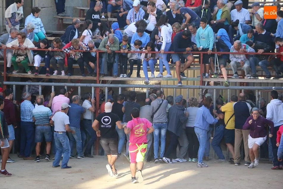 Así, a las nueve en punto de la mañana se escuchaba el estallido de la bomba en el aire anunciando la salida de la manada del prado del Rocoso, lugar en el que han permanecido los 16 novillos protagonistas de estas fiestas en cuatro encierros y otras tantas novilladas.