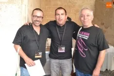 En el caso de la imagen, se recoge el encuentro entre el animador sociocultural del Ayuntamiento de Sancti-Spíritus, Chuchi, ?con dos maestros? de las artes escénicas como él mismo apuntó: Jaime Santos, de La Chana Teatro; y Luis Miguel García, actor del grupo Teatro Corsario.