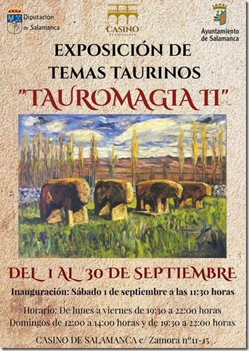El presidente y la Junta Directiva del Casino de Salamanca han informado hoy del estreno de la exposición de temas taurinos ?Tauromagia II?, que se estrenará en la entidad el próximo sábado 1 de septiembre a las 11:30 horas. La actividad ha sido organizada por el Casino en colaboración con la Diputación y el Ayuntamiento de Salamanca. La muestra se abrirá al público de forma gratuita en la sala de exposiciones de la primera planta.
