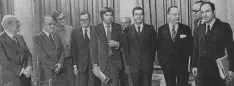 Esta foto tiene unos 40 años. La naturaleza se ha encargado de que casi todos los protagonistas del momento hayan pasado a mejor vida. Hoy, aunque no sería fácil, también podríamos reunir un grupo de personas con ideas políticas muy afines a las de estos antepasados. Pero dudo mucho que fueran capaces de suscribir acuerdos del calado e importancia de los que hicieron posible el llamado consenso de la Transición.