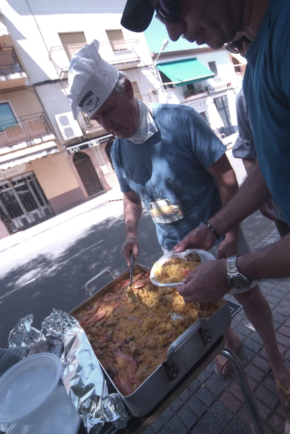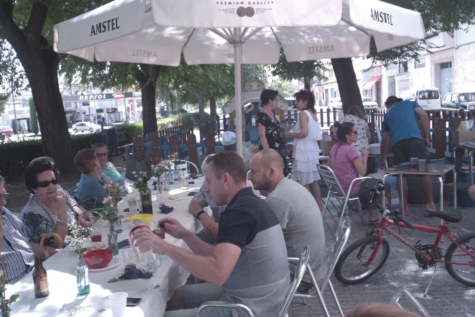 El encuentro comenzó a la hora de comer con la degustación de un aperitivo, al que siguió una paellada. Durante la sobremesa, no faltaron el café, los pasteles, gran variedad de bebidas, y la música que fue solicitada por los vecinos. La confraternización se extendió durante toda la tarde, incluyendo una merienda-cena a base de hornazo y empanada, dándose por finalizada la reunión pasadas las diez de la noche, con el compromiso de volver a encontrarse el año que viene.