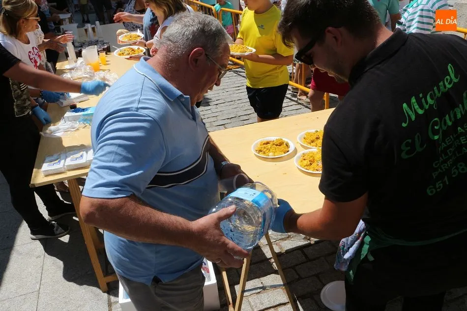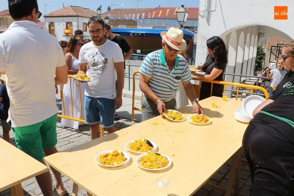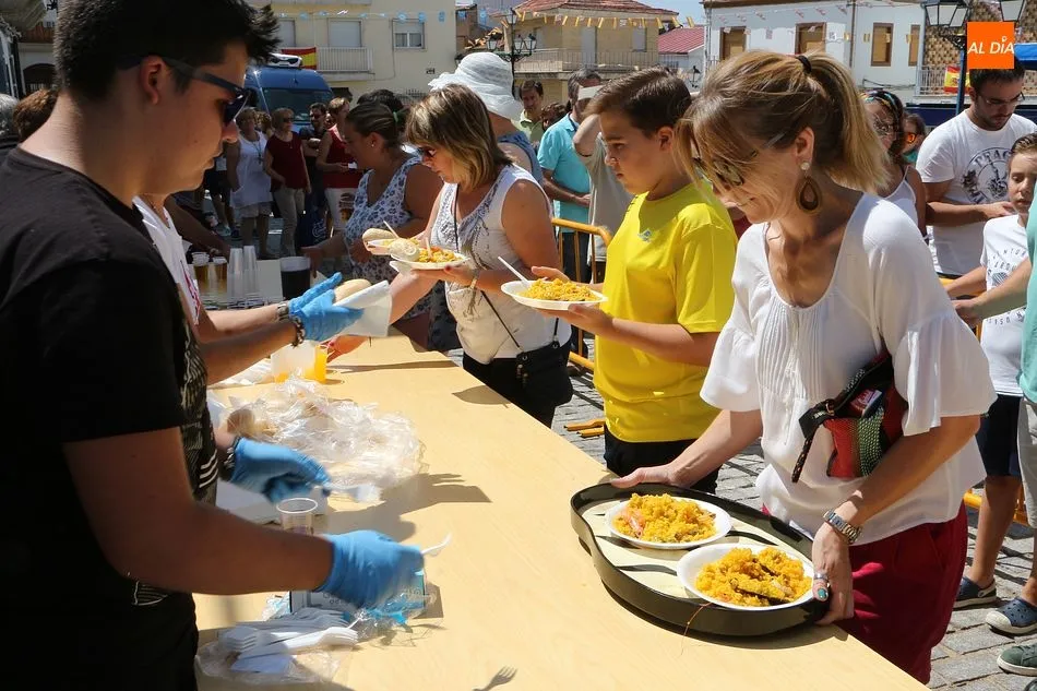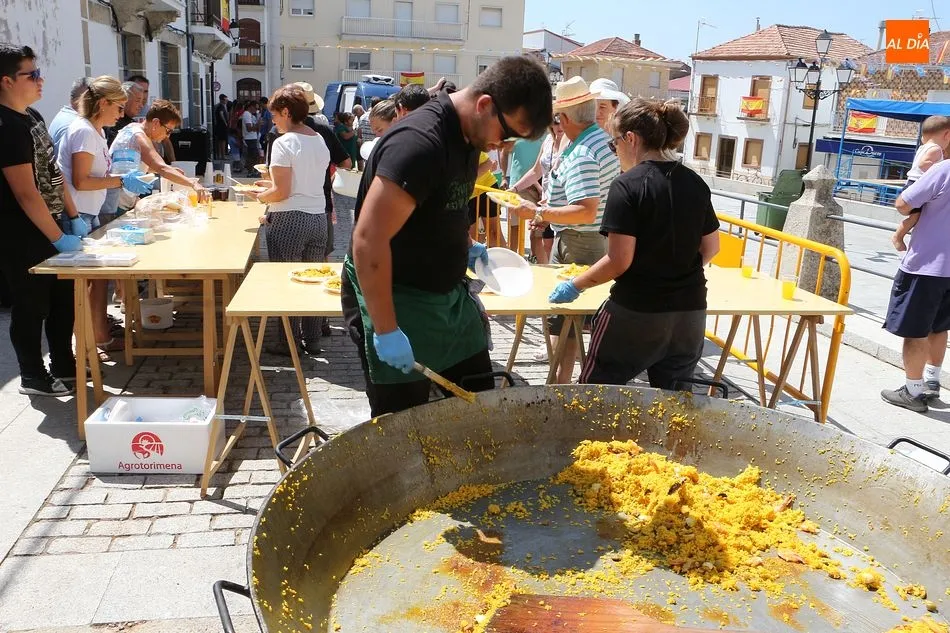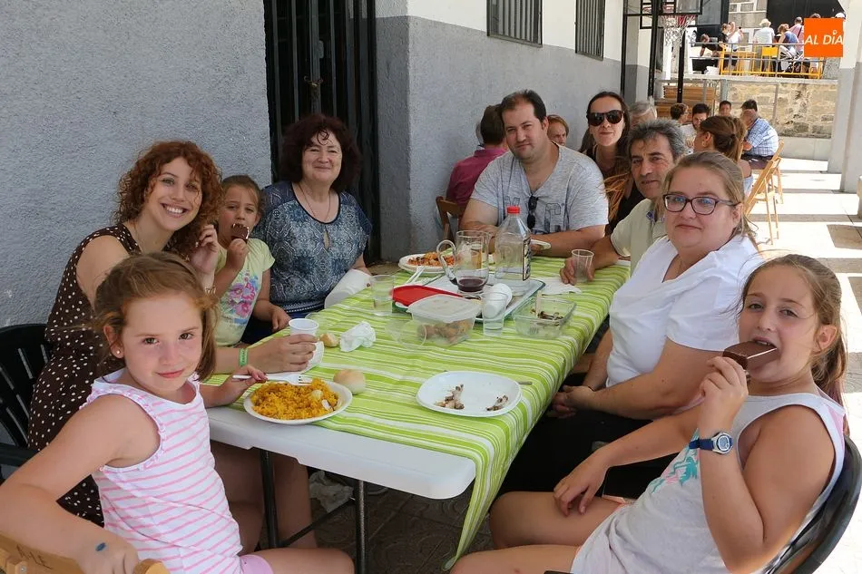 En total se repartieron en torno a 600 raciones de paella con helado de postre para los vecinos. La jornada, marcada por las altas temperaturas, contó además con las finales de los campeonatos de fútbol sala femenino y de peñas, además del concierto del cantante de ascendencia ledradense, Alberto Martín Alejandro.