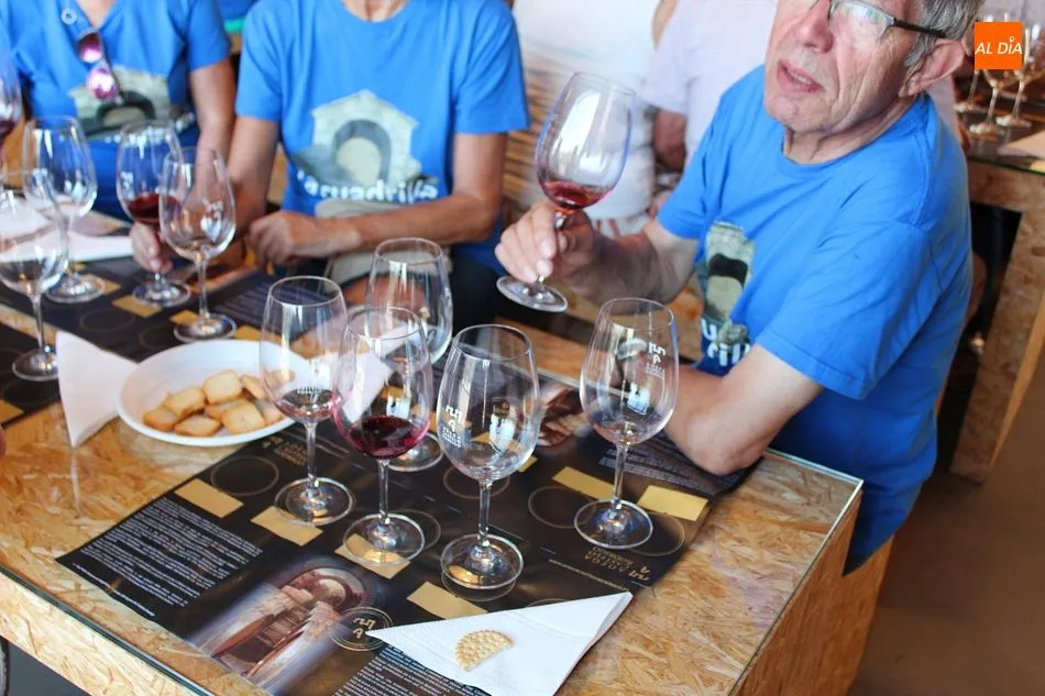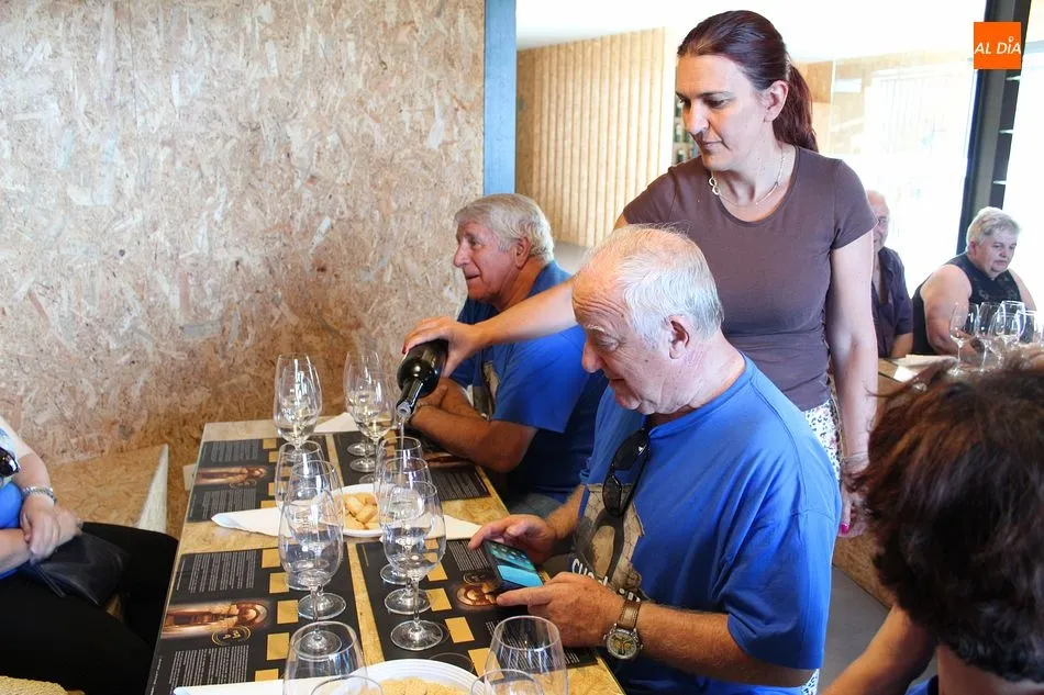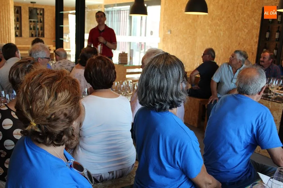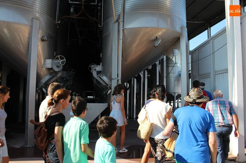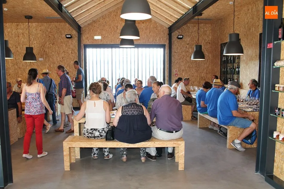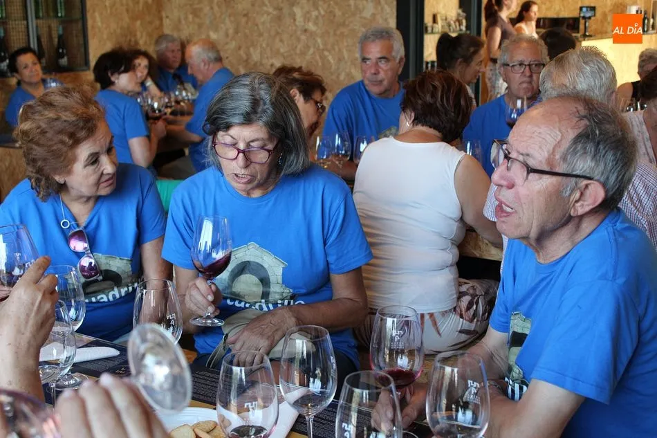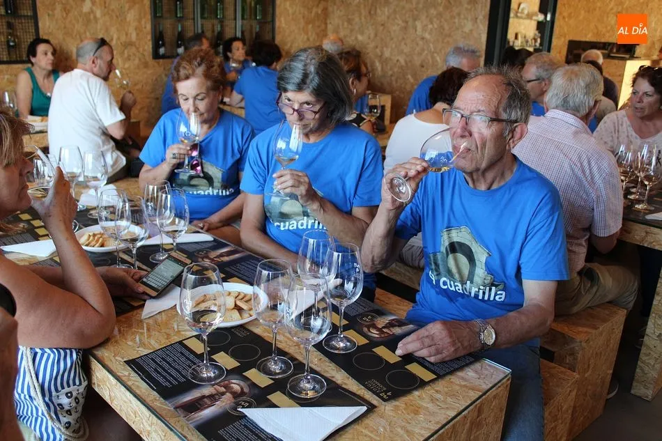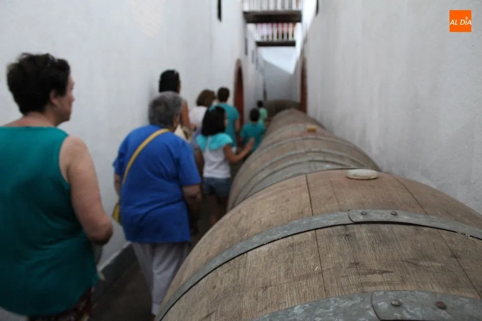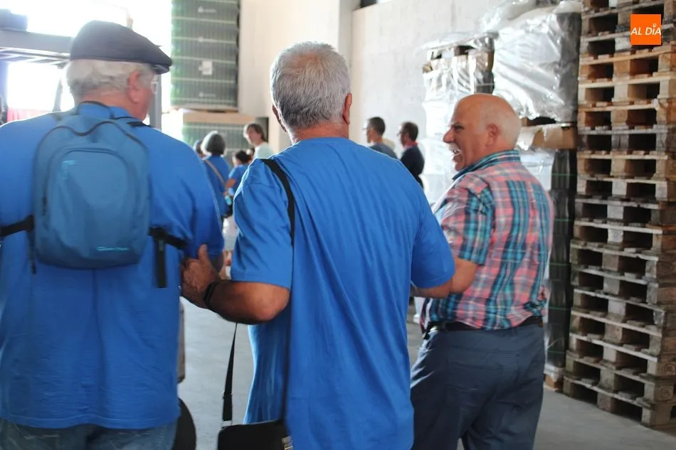 La visita que hoy recibe esta veterana cooperativa es numerosa. La componen familias y grupos de amigos, como los de la peña ?La Cuadrilla?, una verdadera cuadrilla de amigos de Hinojosa de Duero, residentes en la localidad a tiempo parcial o completo. Algunos, de vacaciones en el pueblo durante estos días; otros ya sin obligaciones laborales, repartiendo su jubiloso tiempo entre la tierra natal y la que los vio crecer profesional y personalmente, como Madrid o el País Vasco. Pero, afirman, siempre muy presente Las Arribes. Acompaña hoy la visita el alcalde de Hinojosa, José Bautista.