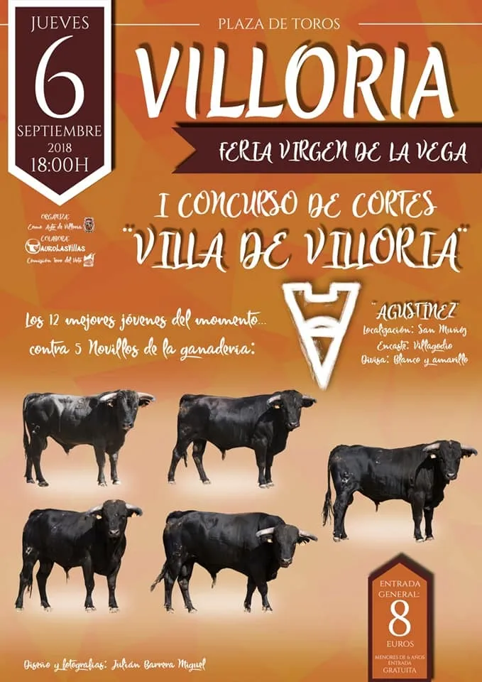 El primer concurso de corte libre Villa de Villoria abrirá el jueves 6 de septiembre el programa. Los ?doce mejores jóvenes del momento? se enfrentarán a cinco novillos de Agustínez. La entrada tiene un precio de ocho euros. Ese mismo día, por la noche, habrá un gran prix interpeñas con pruebas más divertidas para los más hábiles y valientes de la localidad.