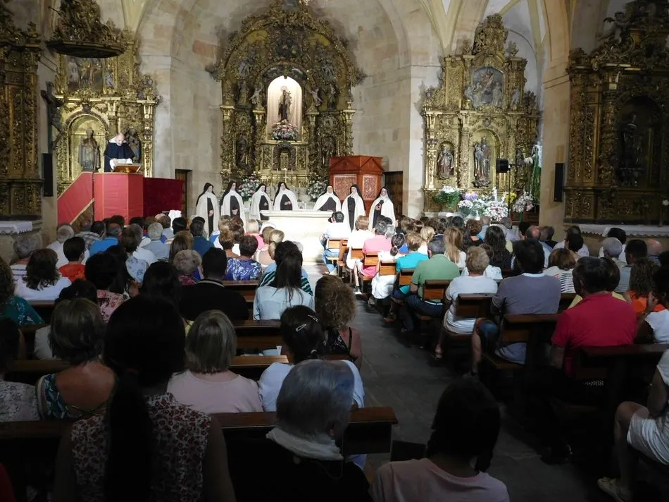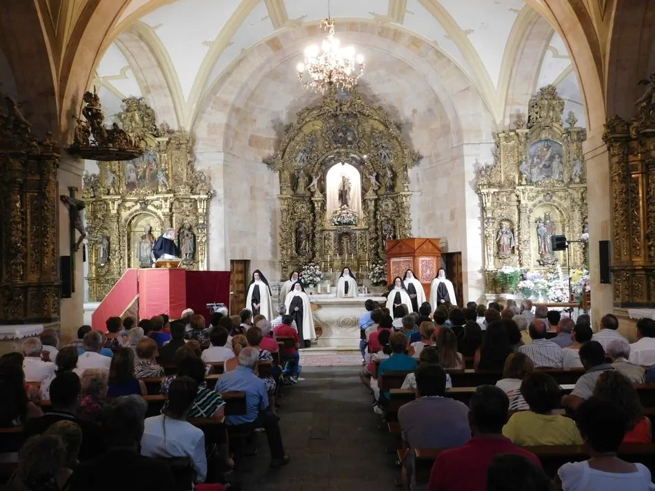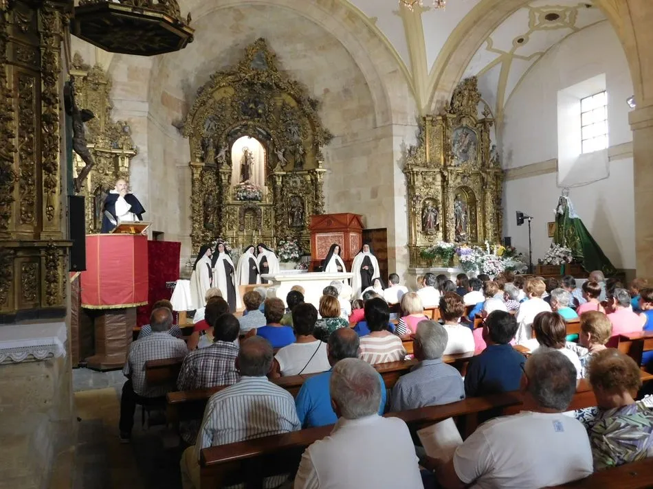 Si habitaran este siglo, las monjas carmelitas hermanas de Teresa de Jesús hubieran llegado a Gomecello desde Dios sabe qué lugar, quizá Palencia o Valladolid, incluso Medina del Campo; ¿tal vez Salamanca? Porque este pueblo de lentejas y garbanzos, de cereales y vastas llanuras, tiene la fortuna de contar con una línea de ferrocarril que le comunica incluso con la frontera portuguesa de Fuentes de Oñoro. Un sencillo medio de transporte que desde que existe tantas rutas ha unido. Pero nuestras monjas vienen del siglo XVI, y lo más que hubieran hecho al llegar a Gomecello es aprovechar su potro de madera de herrar, para calzar adecuadamente a sus cansadas mulas. En la Plaza Mayor del Pueblo, una iglesia, antigua, medieval pero con muchas huellas de cambios de siglos, abre sus puertas. Tiene la advocación del patrono de caminantes, Santiago Apóstol, y en su interior se venera a la Virgen de la Esperanza que acaba de celebrar sus fiestas de agosto. Pero algo sucede cuando desde dentro se oyen las notas de un órgano y unas firmes y rápidas pisadas que se encaminan al altar.