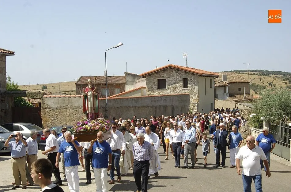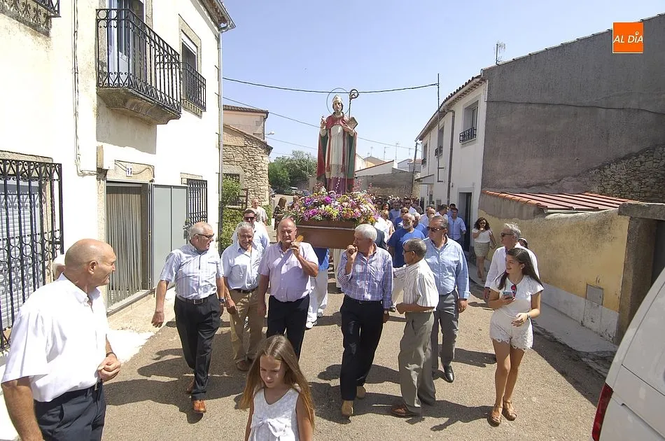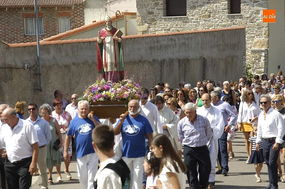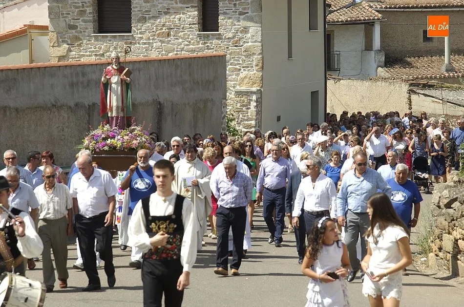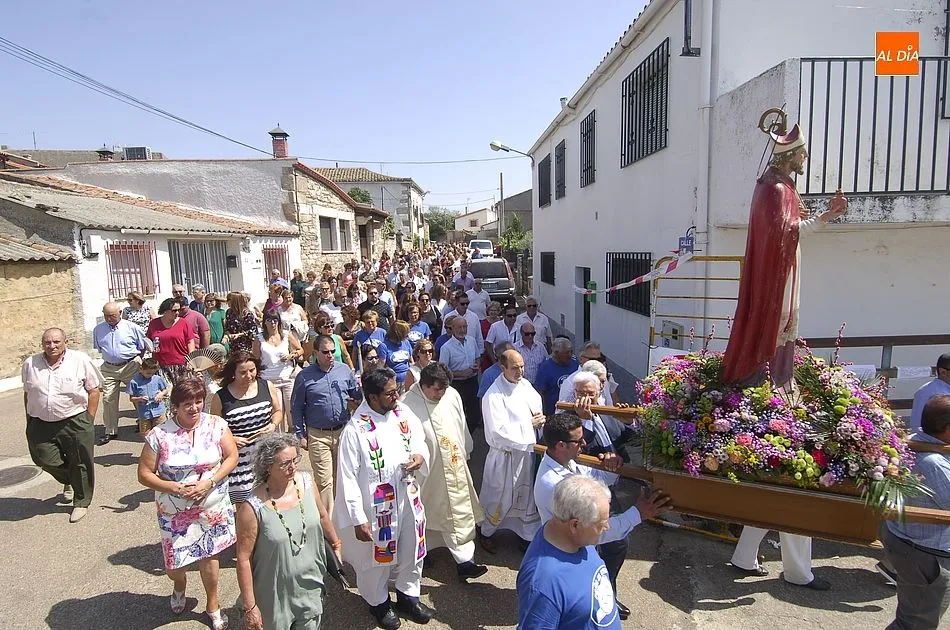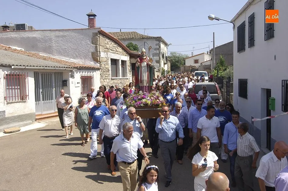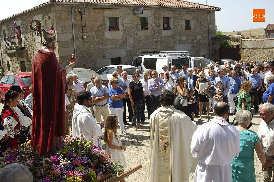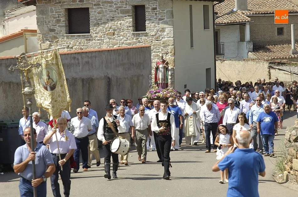Al mediodía, los vecinos se dieron cita en la Parroquia para asistir a la solemne misa presidida por el párroco Juan Carlos Bernardos, a la que siguió la procesión de la imagen del Santo por las calles de la localidad. De vuelta a las puertas del templo, tuvo lugar el ofertorio con bailes y música de tamboril.