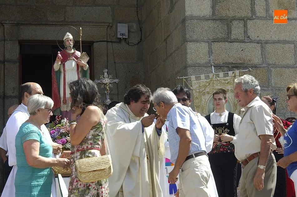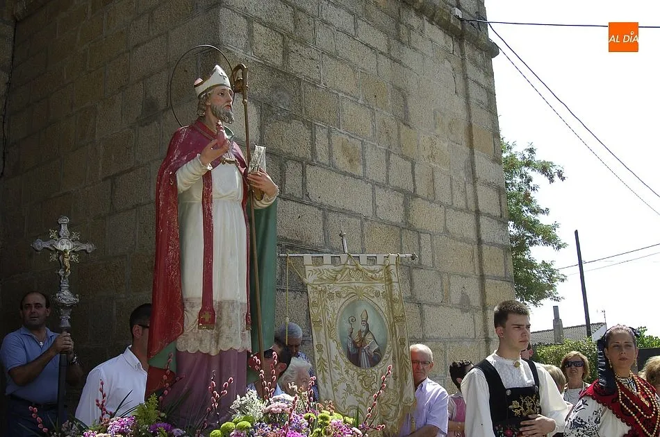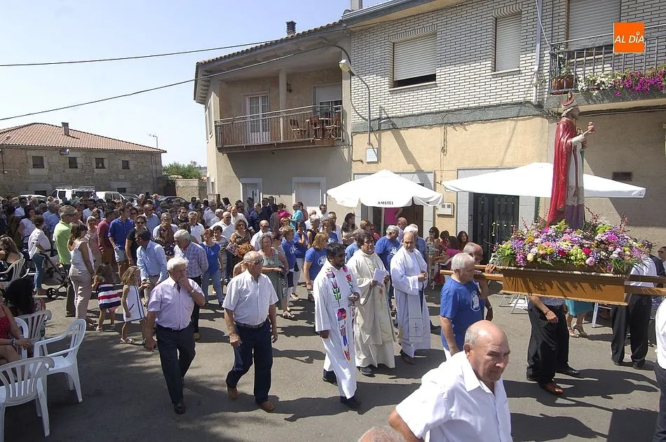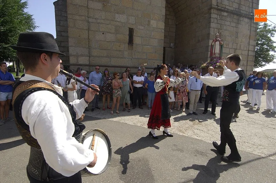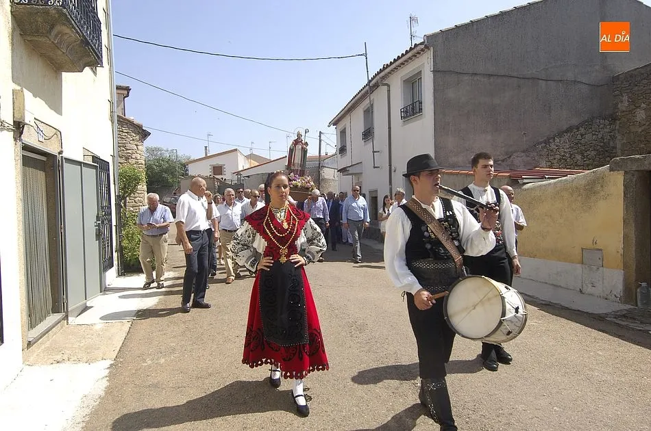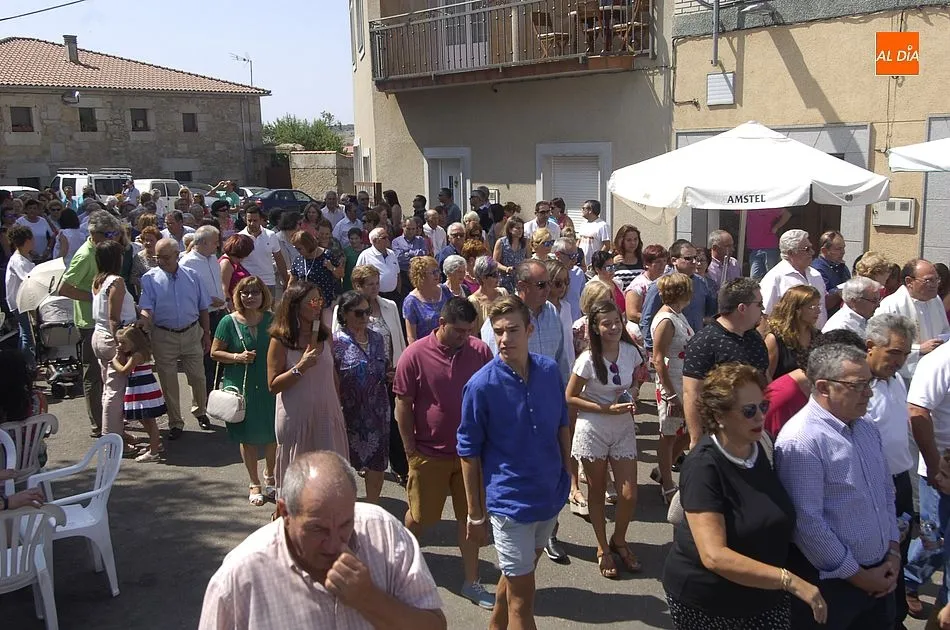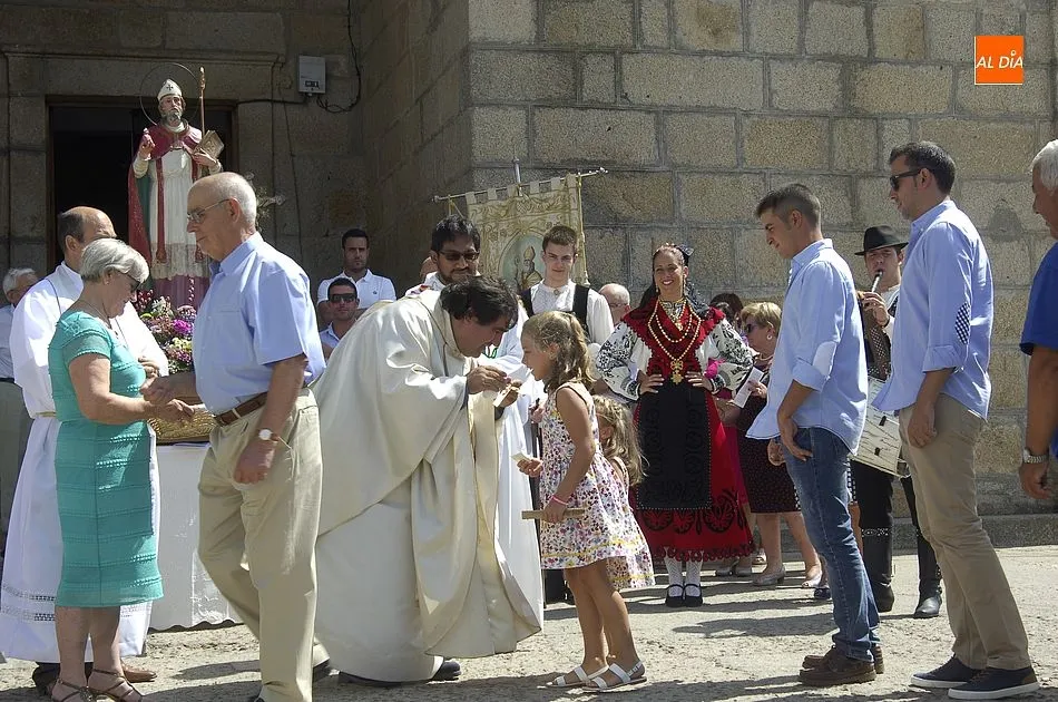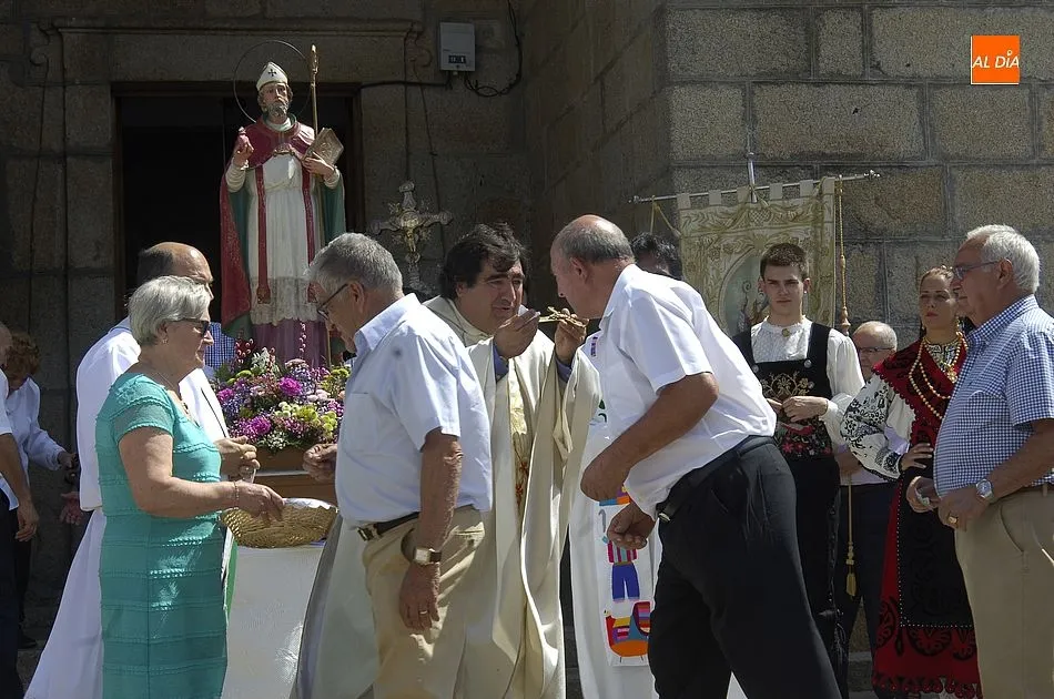 Al mediodía, los vecinos se dieron cita en la Parroquia para asistir a la solemne misa presidida por el párroco Juan Carlos Bernardos, a la que siguió la procesión de la imagen del Santo por las calles de la localidad. De vuelta a las puertas del templo, tuvo lugar el ofertorio con bailes y música de tamboril.