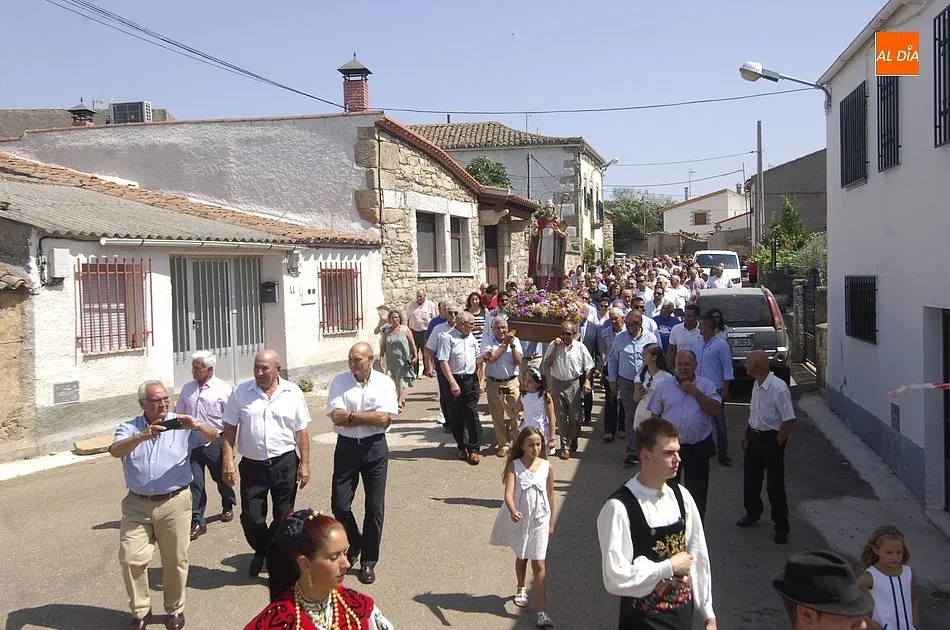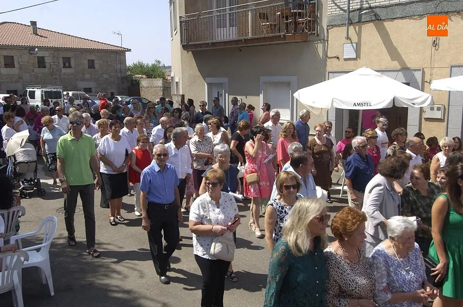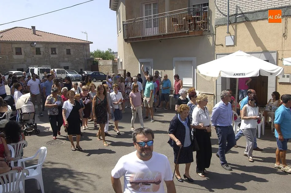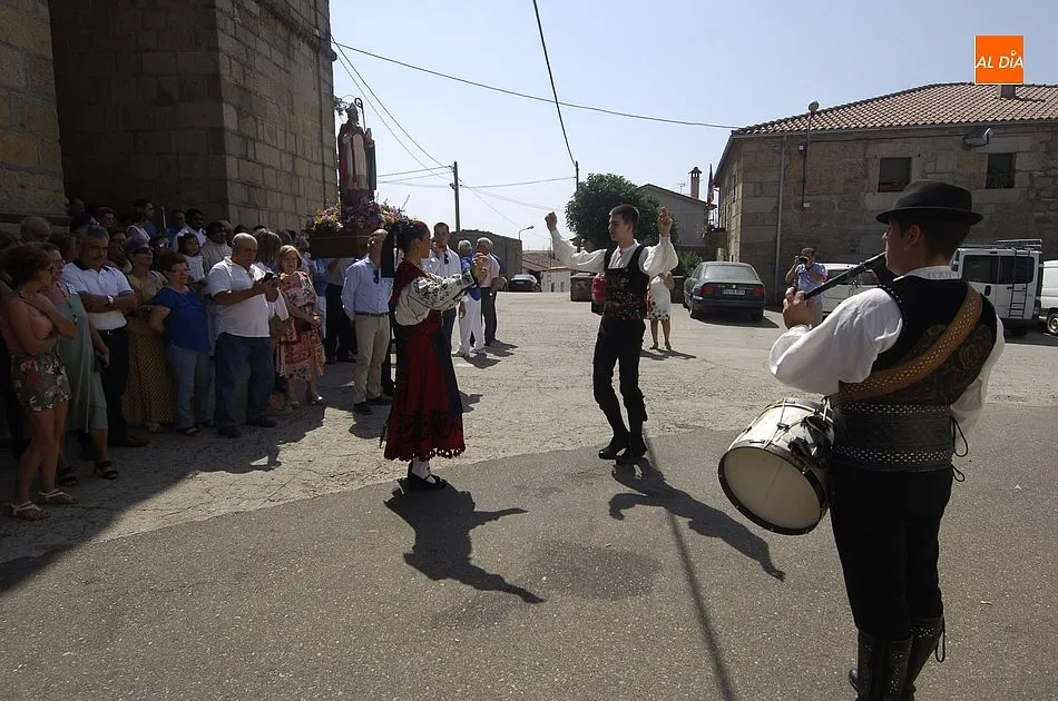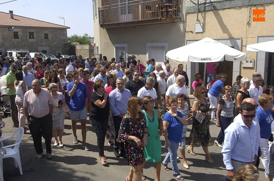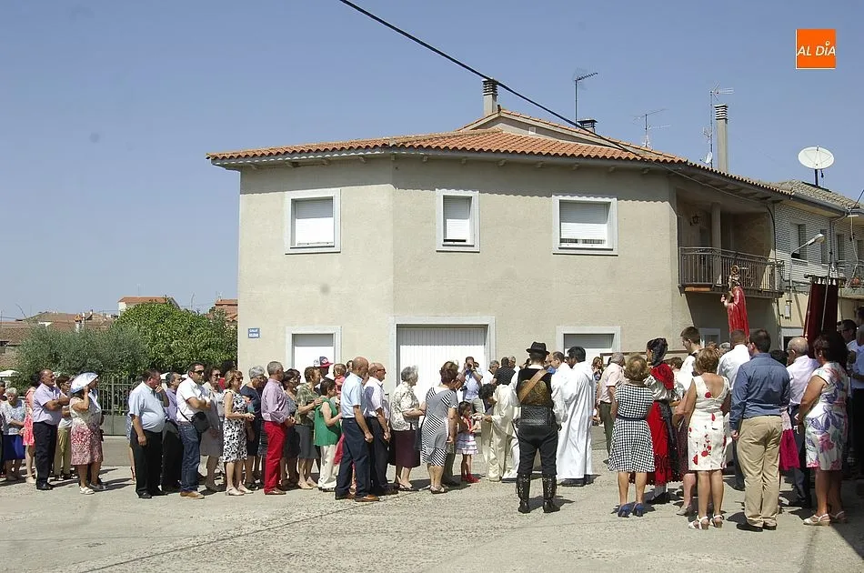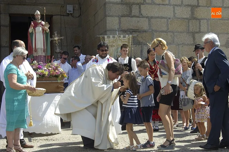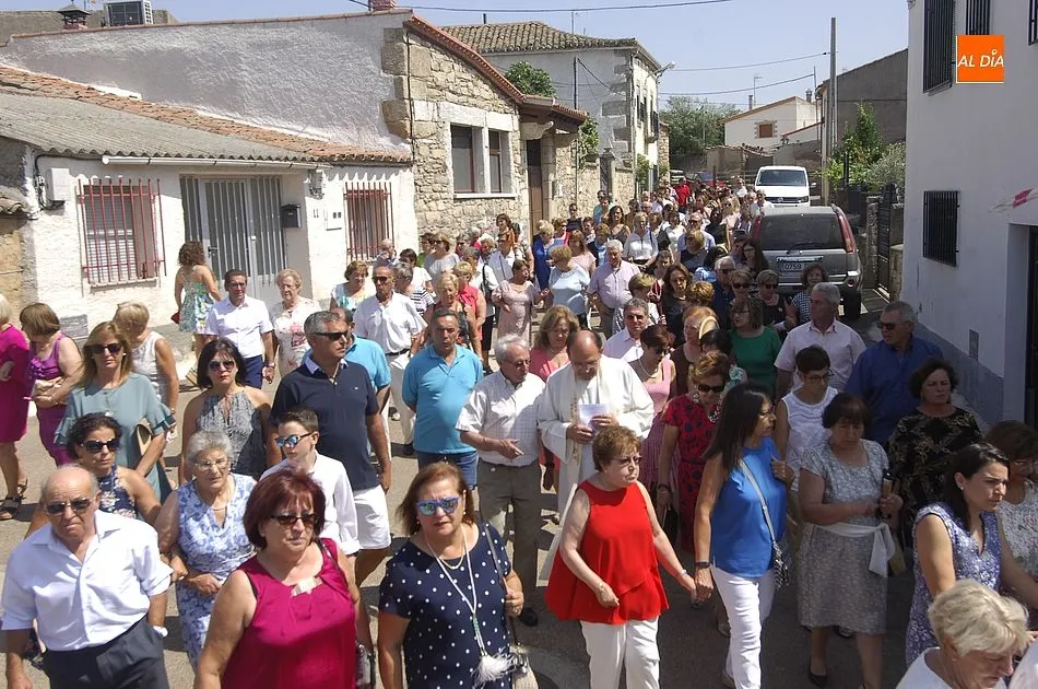 Al mediodía, los vecinos se dieron cita en la Parroquia para asistir a la solemne misa presidida por el párroco Juan Carlos Bernardos, a la que siguió la procesión de la imagen del Santo por las calles de la localidad. De vuelta a las puertas del templo, tuvo lugar el ofertorio con bailes y música de tamboril.