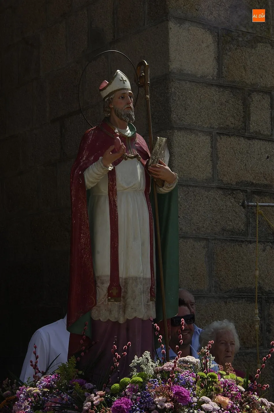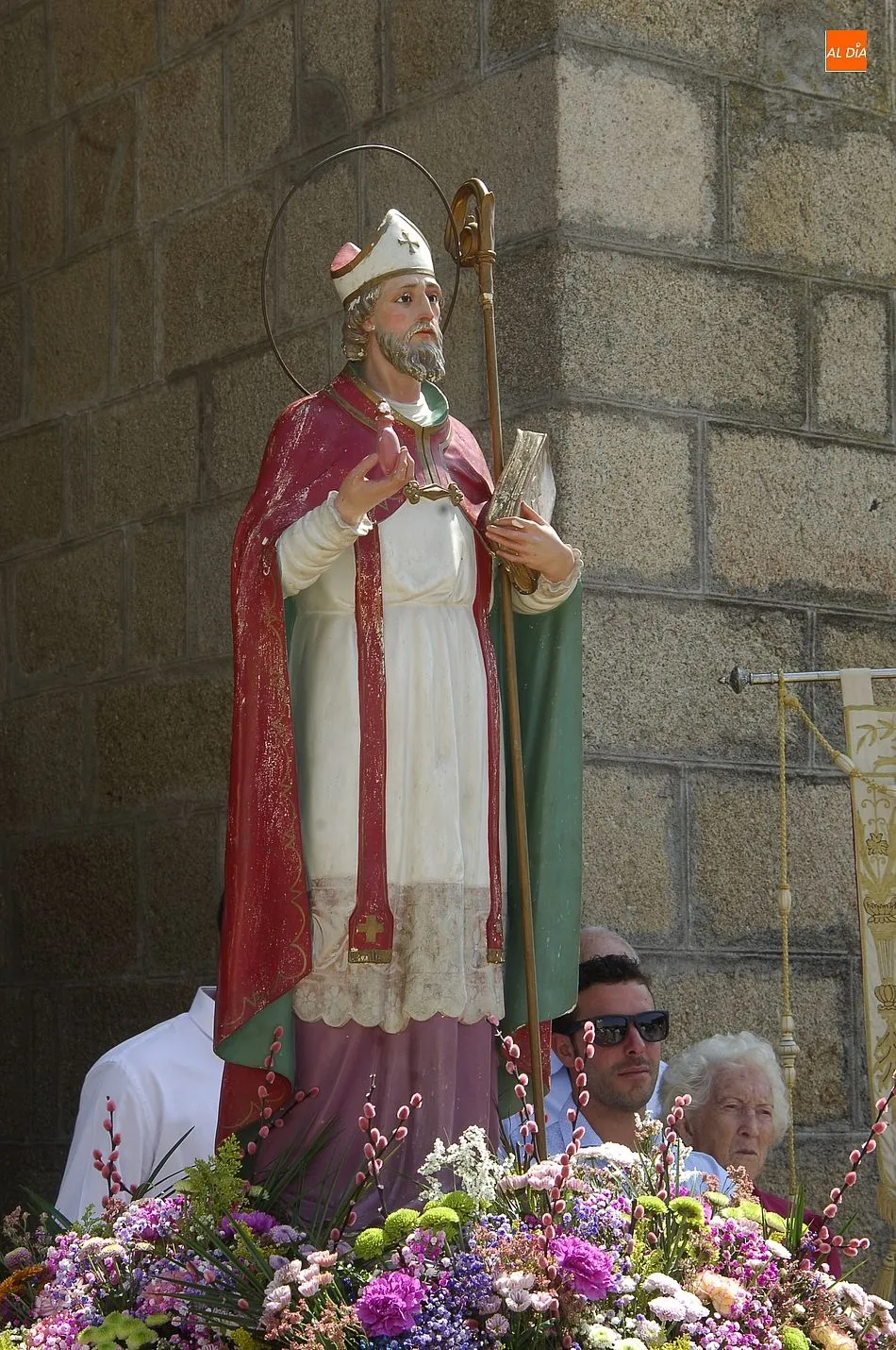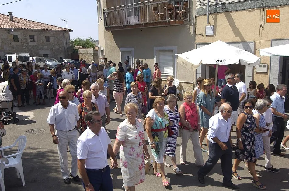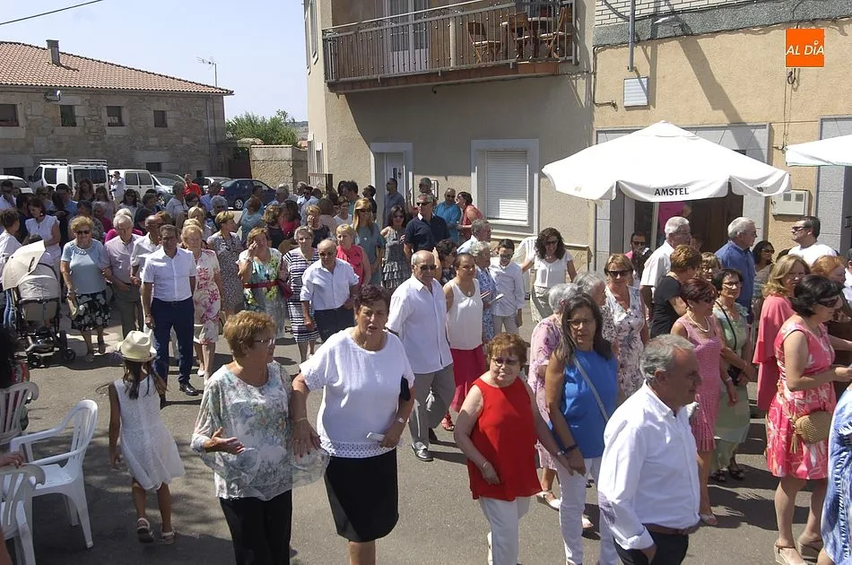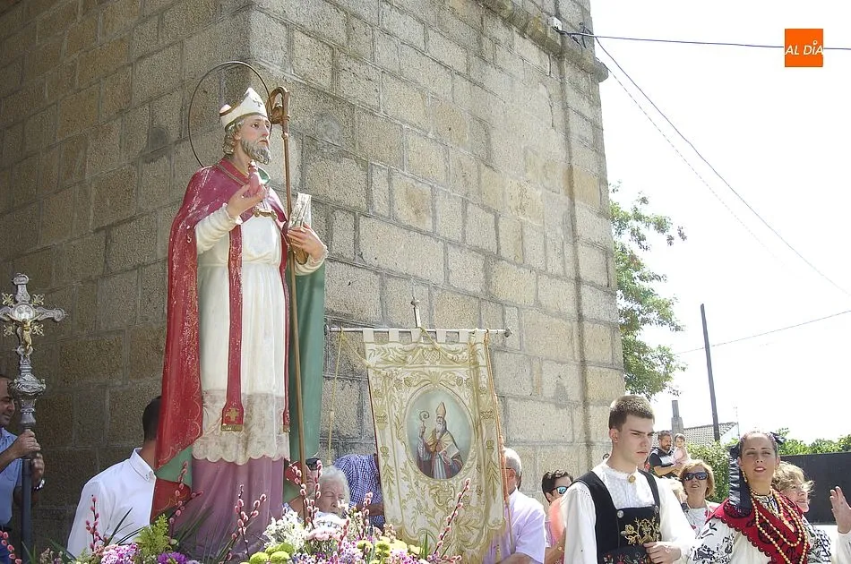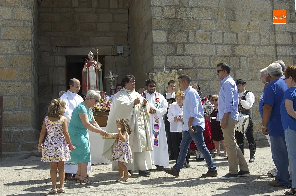 Al mediodía, los vecinos se dieron cita en la Parroquia para asistir a la solemne misa presidida por el párroco Juan Carlos Bernardos, a la que siguió la procesión de la imagen del Santo por las calles de la localidad. De vuelta a las puertas del templo, tuvo lugar el ofertorio con bailes y música de tamboril.