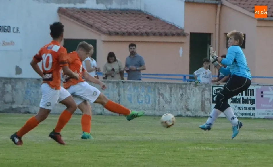 Quizás de lo más interesante del partido fue que el Ciudad Rodrigo reaccionó muy bien a este gol, tomando la batuta en el tramo final del primer tiempo, en el que generó de nuevo varias opciones muy claras, comenzando en el 37? con un disparo por alto de Dani Crespo dentro del área que se perdió al lado del palo izquierdo. Como conclusión del primer tiempo, el portero envió a córner una intentona frente a él de Manu González; y Edu mandó fuera un remate un poco acrobático en el 2º palo a un balón colgado por Sergi desde la derecha.