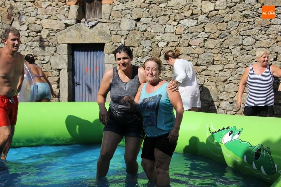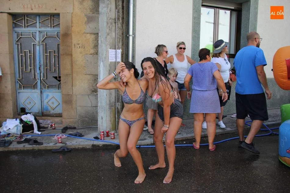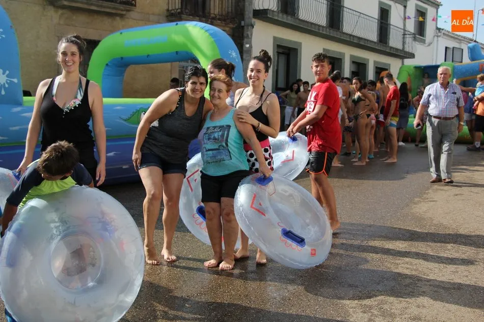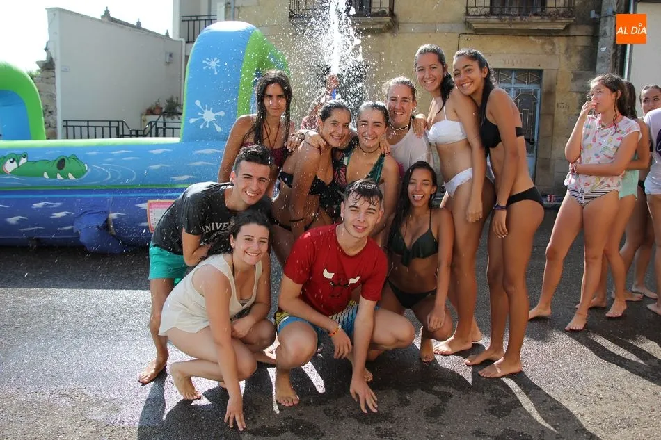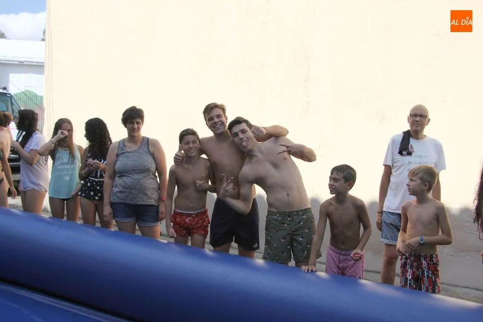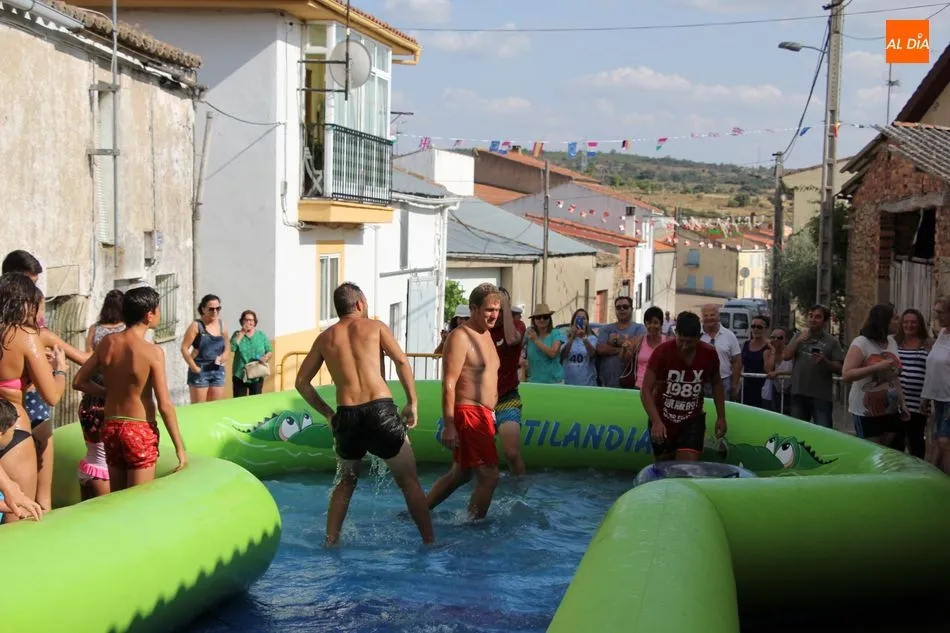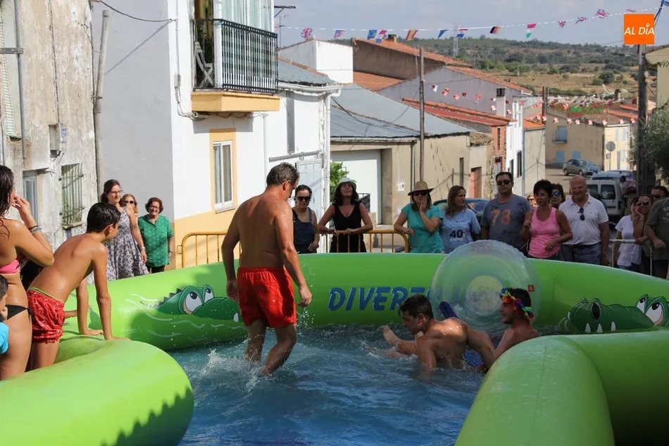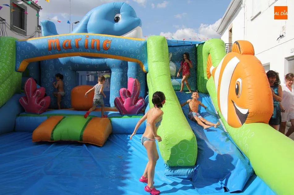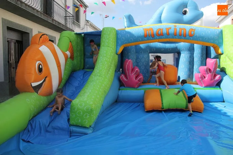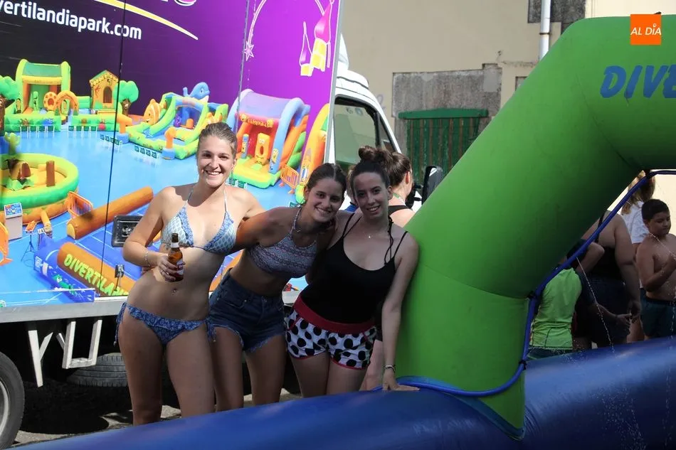 En Pereña de la Ribera ya se empieza a notar ambiente de fiesta. Gran animación la que se podía ver este miércoles con un gran parque infantil acuático y un tobogán de 50 metros que hizo las delicias no solo de los más pequeños, pues los mayores también disfrutaron, si no más, de esta moderna ?resbalina? instalada en la plaza del Caño y la calle 14 de mayo, y que tanto éxito está teniendo en las fiestas de los pueblos de la comarca.