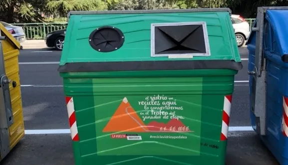 Los envases de vidrio reciclados en estos contenedores serán los que conformen un trofeo sostenible que se entregará a la salida de la décima etapa que se celebrará el próximo 4 de septiembre.