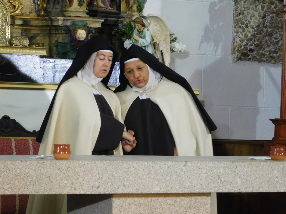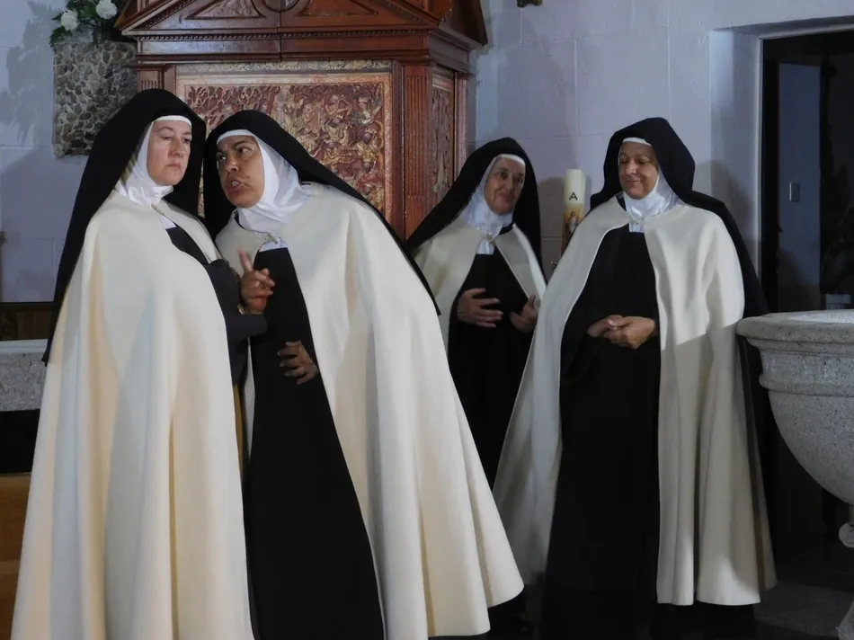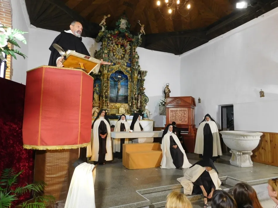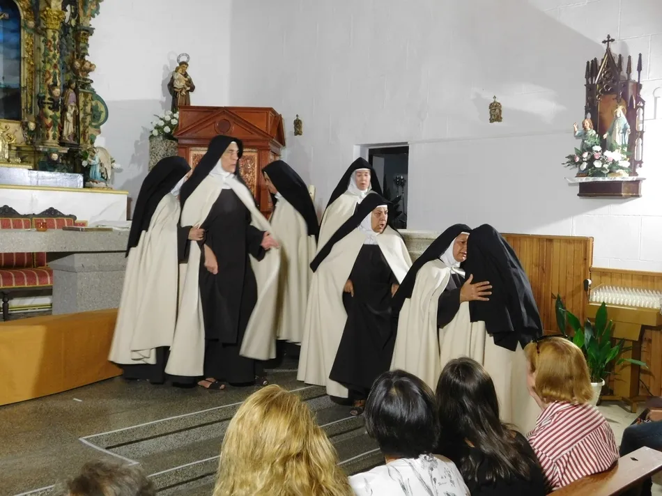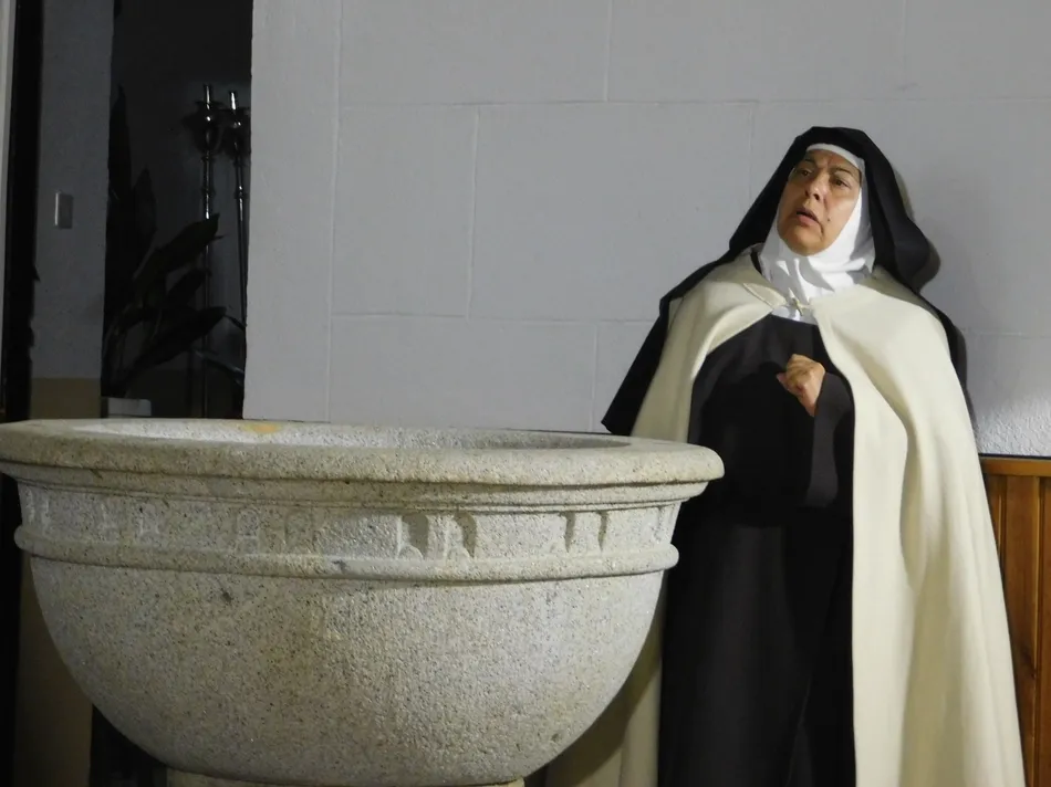 Hay un pequeño pórtico sostenido por columnas que no permite ver el arco de la puerta de entrada, pero al oír las notas del órgano que dentro suena a manos del maestro Salinas, estas mujeres, carmelitas descalzas, hermanas de Teresa de Jesús y libres por ella, saben que han llegado a un final de camino que no tiene retorno, pero donde empezará el devenir de los acontecimientos más importantes en la historia de su madre. Y ellas van a contar al resto de los hombres por qué esto va a ser así.