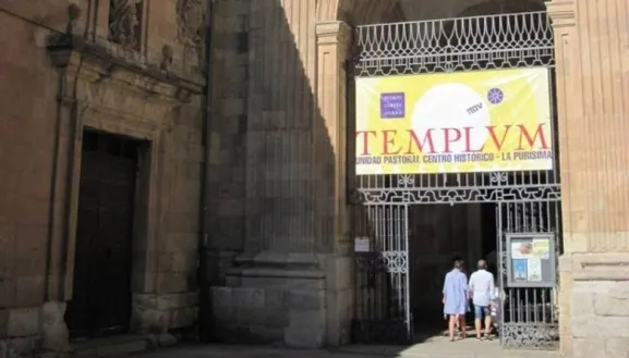 Desde hace algunos meses exhibe una pancarta, grande y llamativa, colocada en la rejería de su fachada principal, como puede observarse en las fotografías que acompañan a este escrito. ?Este hecho no es ninguna novedad ya que es habitual ver pancartas ahí colgadas, pese a las denuncias trasladadas a la Junta de Castilla y León (Administración con competencias en materia de patrimonio cultural) por esta Asociación, que participa de la vigilancia activa que la propia Administración debería ejercer?, explican desde el colectivo Ciudadanos por la Defensa del Patrimonio.