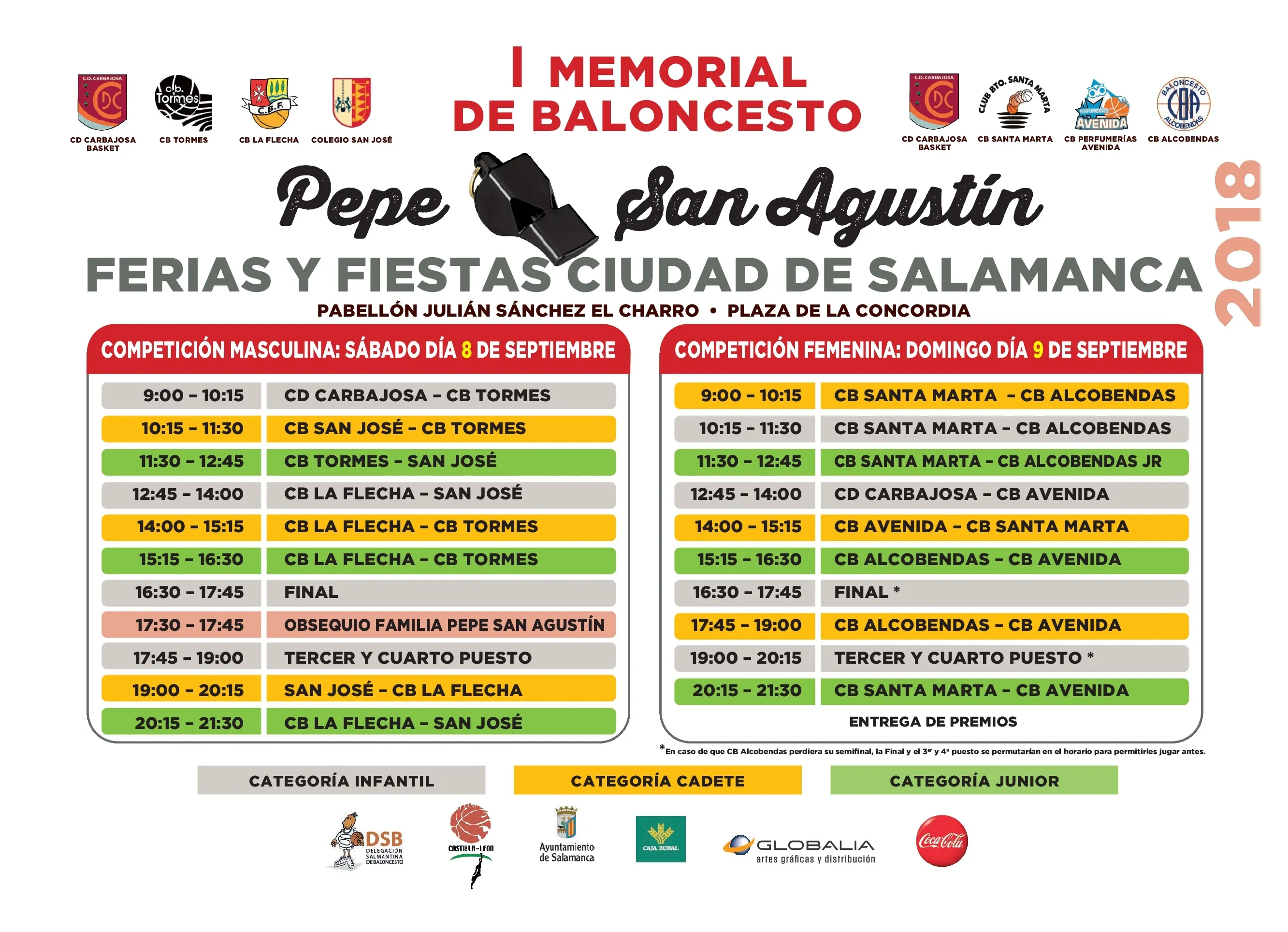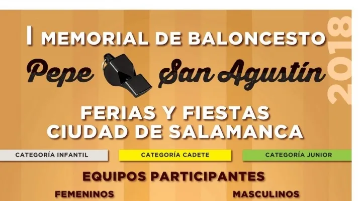 Salamanca acogerá el I Memorial Pepe San Agustín en las Ferias y Fiestas | Imagen 1Arranca la temporada la temporada baloncestística y el próximo sábado 8, en categoría masculina y el domingo 9 de septiembre, en categoría Femenina, arranca la primera edición del Memorial ?Pepe San Agustín?, que se incluye dentro del programa de Ferias y Fiestas de Salamanca, que se disputará en el Pabellón Julián Sánchez El Charro. Se trata de un torneo de pretemporada dirigido a los equipos de categoría autonómica de Salamanca y provincial, de preparación para la temporada que está a punto de arrancar. Con este evento, tanto la Federación de Baloncesto de Castilla y León, la Delegación Salmantina de Baloncesto de Salamanca y el Ayuntamiento de Salamanca, quieren rendir un pequeño homenaje a la figura del ex árbitro salmantino, Pepe San Agustín, que falleció el pasado 22 de febrero.