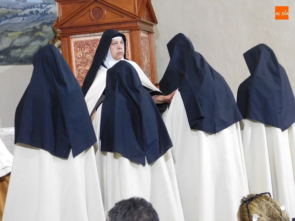 Como la torre del homenaje del castillo de Monleón parece salvaguardarle de cualquier ataque, vemos en el altar de la parroquia de La Asunción de los monleonenses, un reverendo dominico con el que la Inquisición que representa, pretende salvaguardar la fe, al parecer quebrantada en su ortodoxia por la madre Teresa. Pero unas simples monjas sin ?poder, derechos, protectores o respeto? que las ampare, se arrogan del poder que les da las palabras de una maestra, que sólo quiso seguir al suyo, al de Nazaret. Toda la obra se convierte en una hora en un recorrido biográfico por la vida de esta mujer que como cualquier otra fue niña, joven, y adulta, y que bajo un hábito de entrega a quien bien supo elegir, sedujo a todos los hombres de la tierra que la conocieron, y libró de la esclavitud a toda mujer que la siguió.