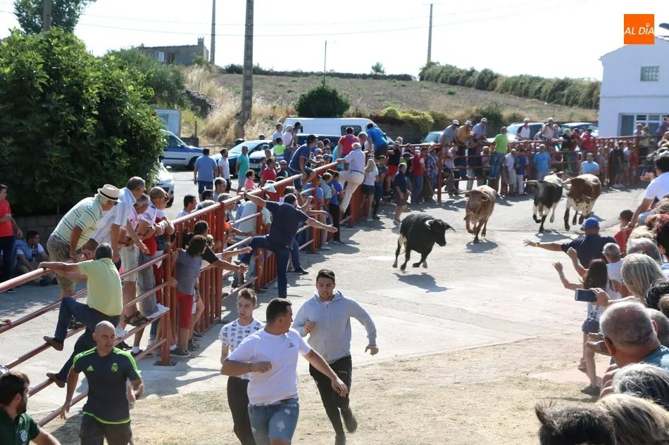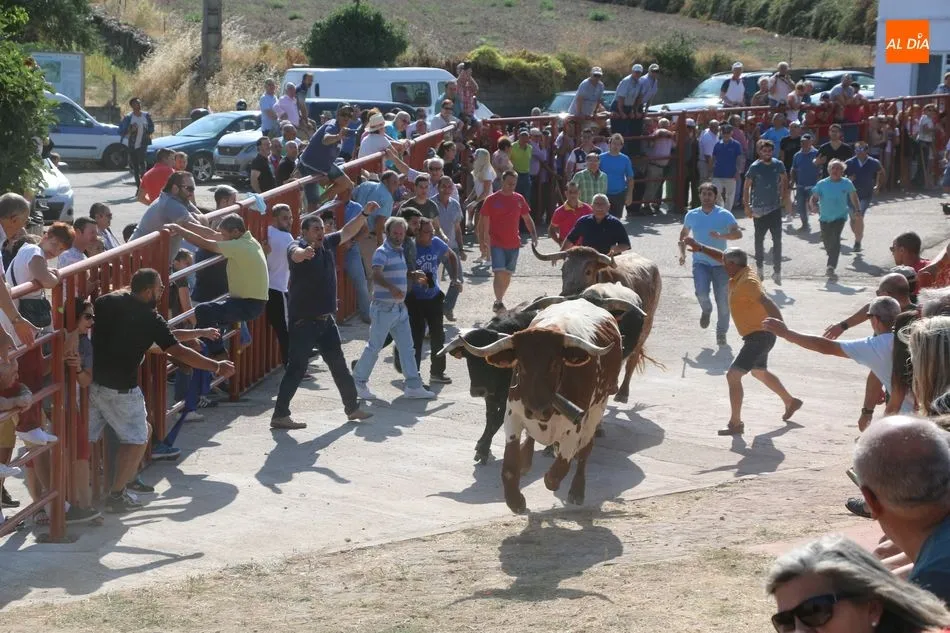 Los novillos de Valrubio fueron los encargados de poner emoción al primer encierro de las fiestas en Pereña de la Ribera. Como suele ser tradicional, los cuatro erales se soltaron de dos en dos realizando de este modo dos encierros llenos de emoción tanto en la calle como en la plaza, aunque los mansos hicieron un buen trabajo.