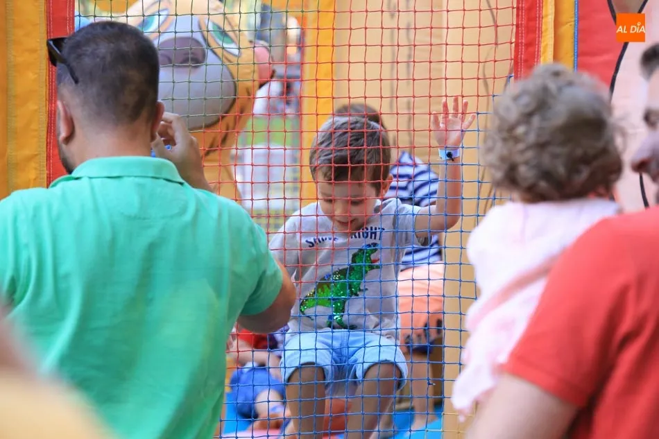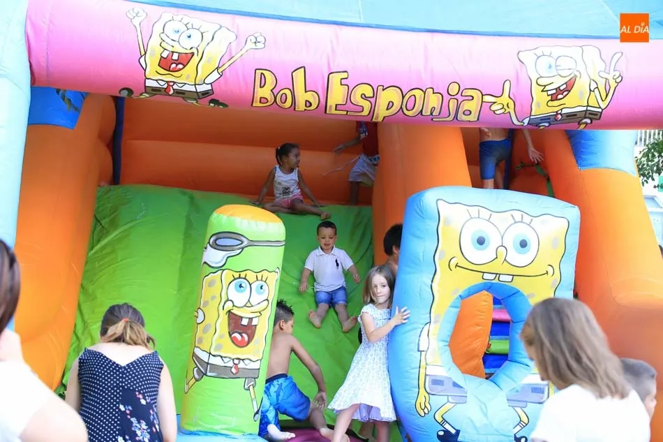 Especialmente en la tarde de hoy, una multitud de niños se ha congregado en el parque Picasso para disfrutar de castillos hinchables, Karts para niños, fiesta de la espuma, toboganes de agua y pintacaras. El sábado de fiestas concluirá con la actuación musical del grupo ?Rumba Atres?.