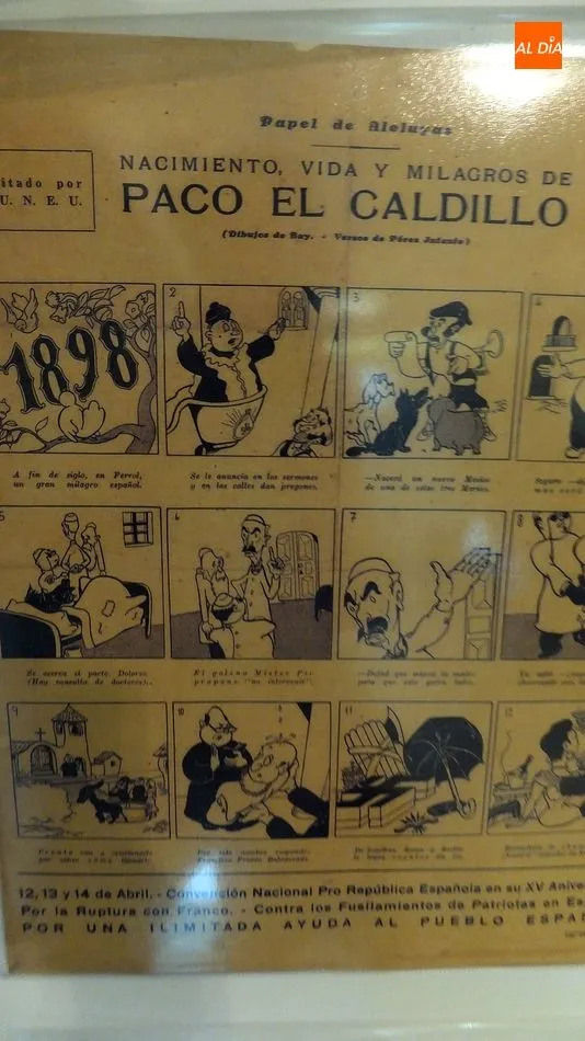 La muestra colgada en Lumbrales recoge una colección de Aleluyas, de los siglos XVIII, XIX y XX, de variada temática. Motivos taurinos, propaganda, crítica política, carnaval, motivos religiosos, sucesos, usos y costumbres, historietas con moraleja, ironía y mucho humor. ?Aleluyas sin censura?, con mucha ironía, relacionadas con la vida diaria de otras épocas, pero, curiosamente con vigencia en la actualidad. Como el pliego titulado ?Nacimiento, vida y milagros de Paco el Caldillo?, o ?Aleluyas sin censura de la vida un poco dura con mácula y un borrón de un soberano borbón?.