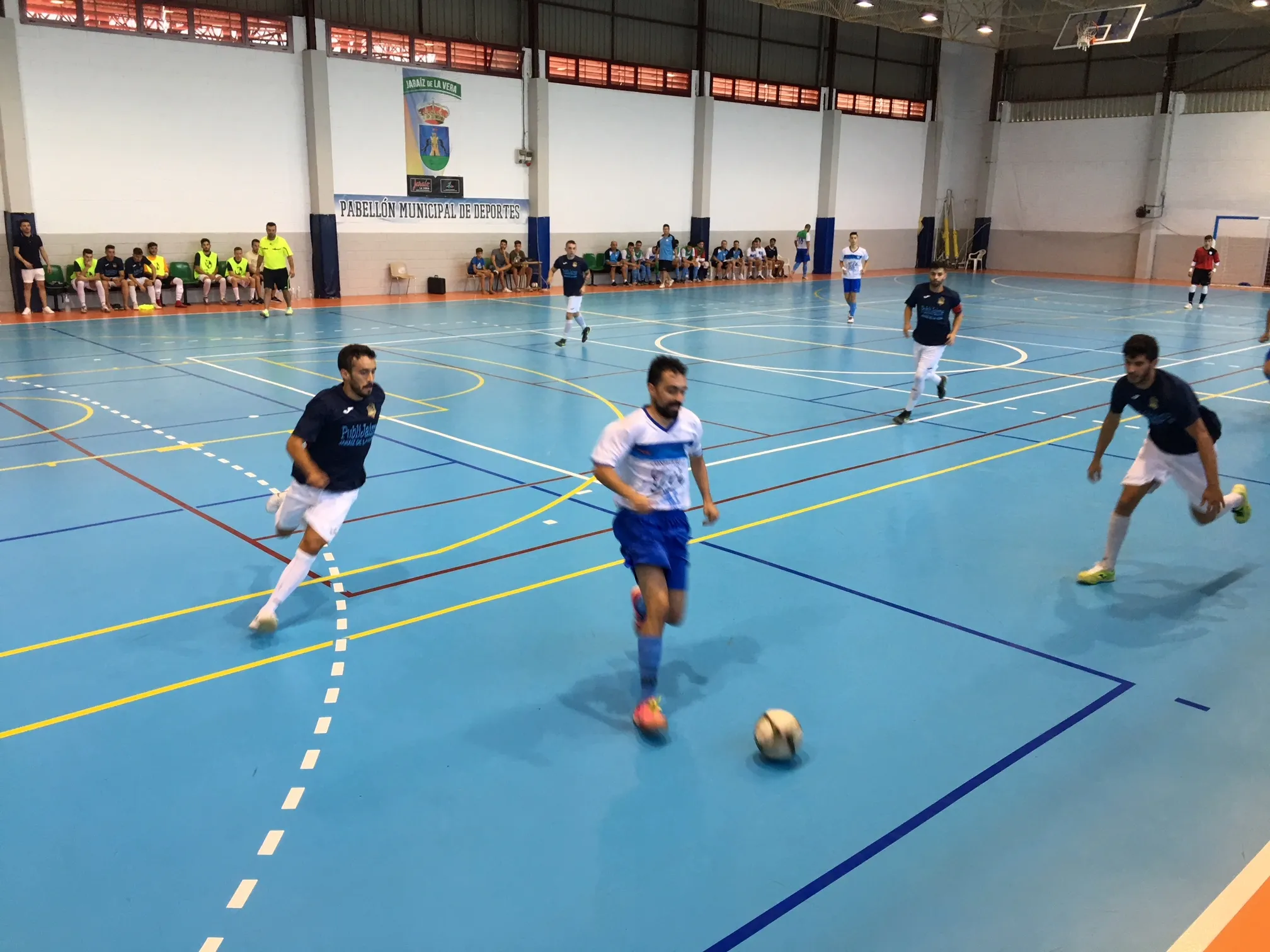 Primer test del equipo que salió de inicio con Viti en portería, Ichu, Beñat, Barbero y Sergio Sánchez. Comenzaron con un 2-0 en contra hasta que Adrián Barbón marcó el primer gol llegando al segundo palo, recortando distancias antes del descanso. El equipo local Publijaime Fútsal llegó a la sexta falta que tiró Barbero.