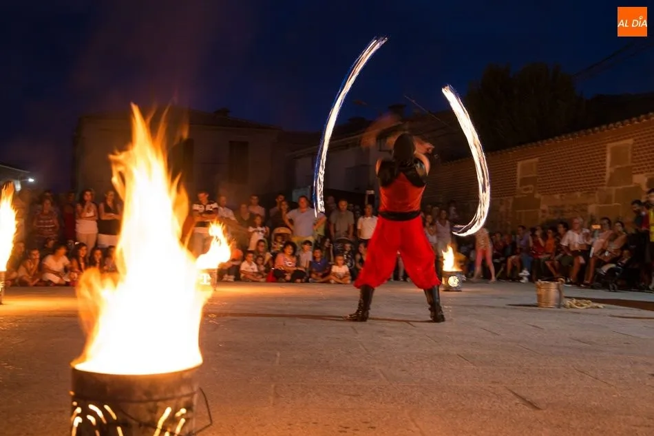 Los vecinos de Villoria disfrutaron este domingo de un espectáculo de fuego y danza de la mano de la compañía Zolopotroko Teatro. El espectáculo, que tuvo lugar en la Plaza Mayor, se enmarca en el programa de la Semana Cultural.