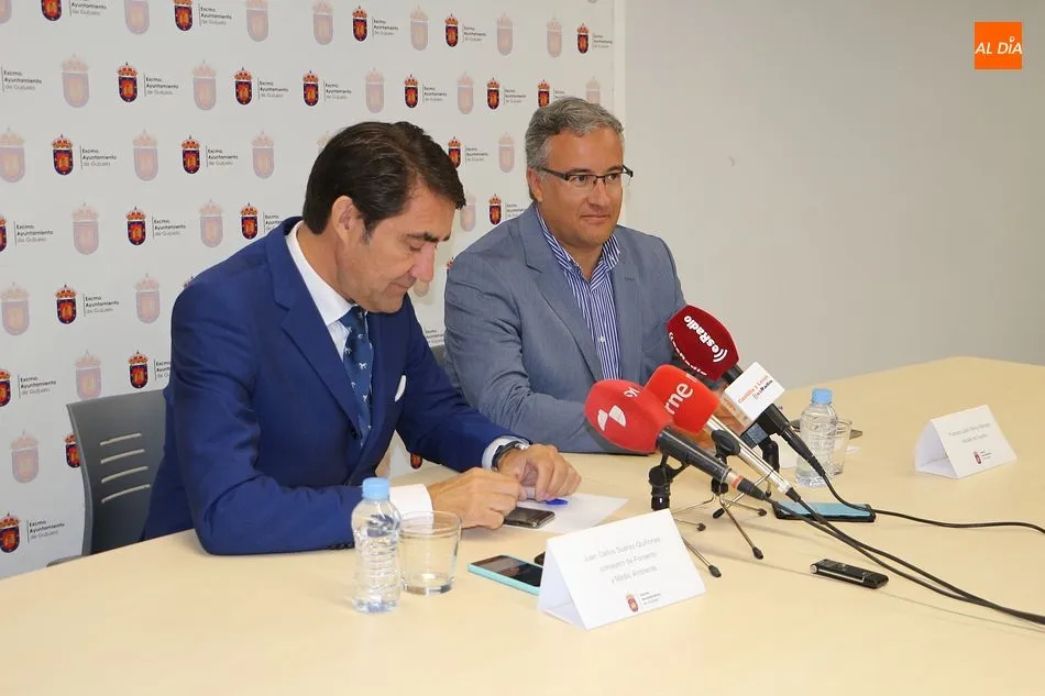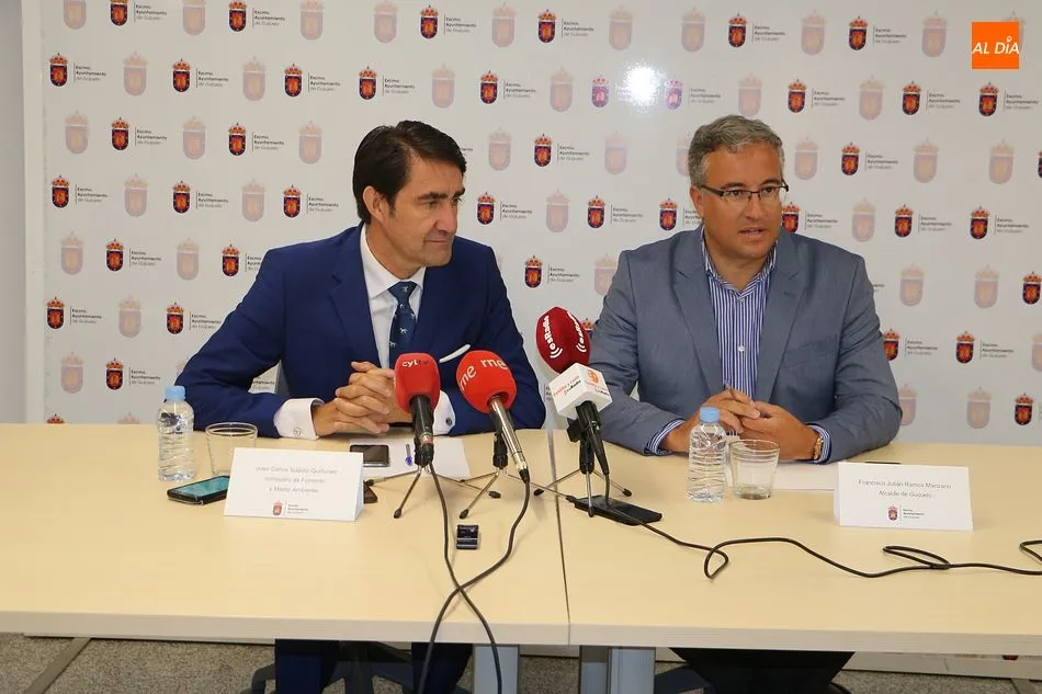 Guijuelo ha recibido esta mañana la visita del consejero de Fomento y Medio Ambiente, Juan Carlos Suárez-Quiñones, quien junto al alcalde, Julián Ramos; el director general de Transportes, Ignacio Santos Pérez y el de Calidad y Sostenibilidad Ambiental, José Manuel Jiménez Blázquez, han presentado oficialmente los proyectos de sustitución integral del alumbrado público a tecnología led y la ampliación del centro de servicio al transporte.