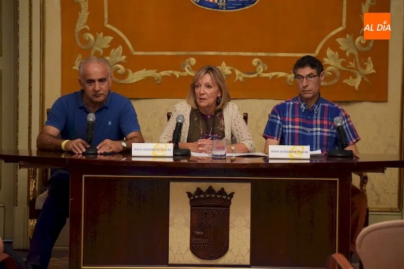La concejala de Familia e Igualdad de Oportunidades en el Ayuntamiento de Salamanca, Cristina Klimowitz, el diputado provincial de Deportes, Jesús María Ortiz, y el responsable de jueces de la delegación provincial de Atletismo, Eufemio de Dosuna, han presentado hoy en rueda de prensa las novedades de la programación en torno a la tercera edición de la carrera popular contra la violencia de género, que se celebrará el domingo 16 de septiembre y que contará con actividades paralelas de sensibilización dirigidas a menores.