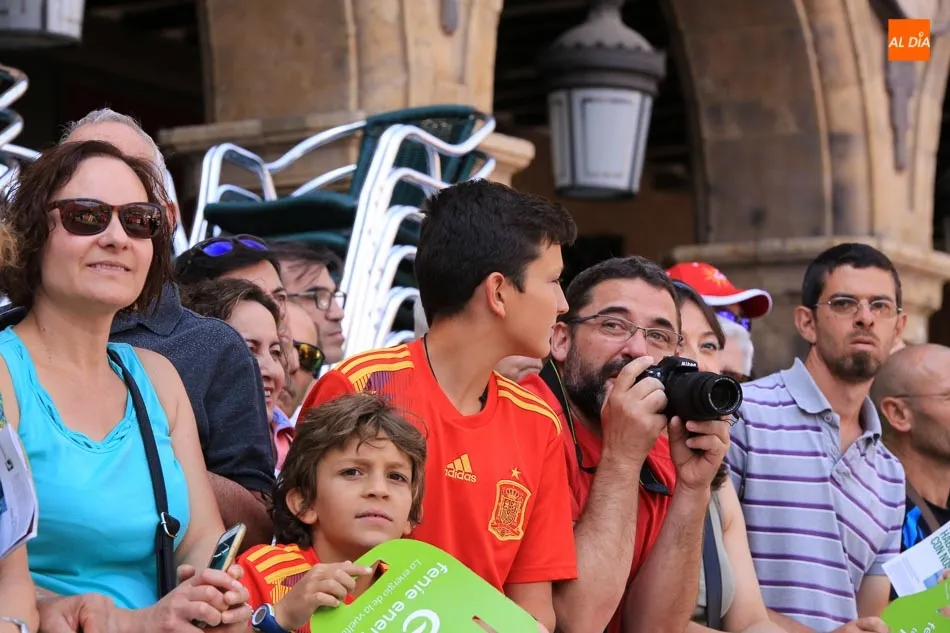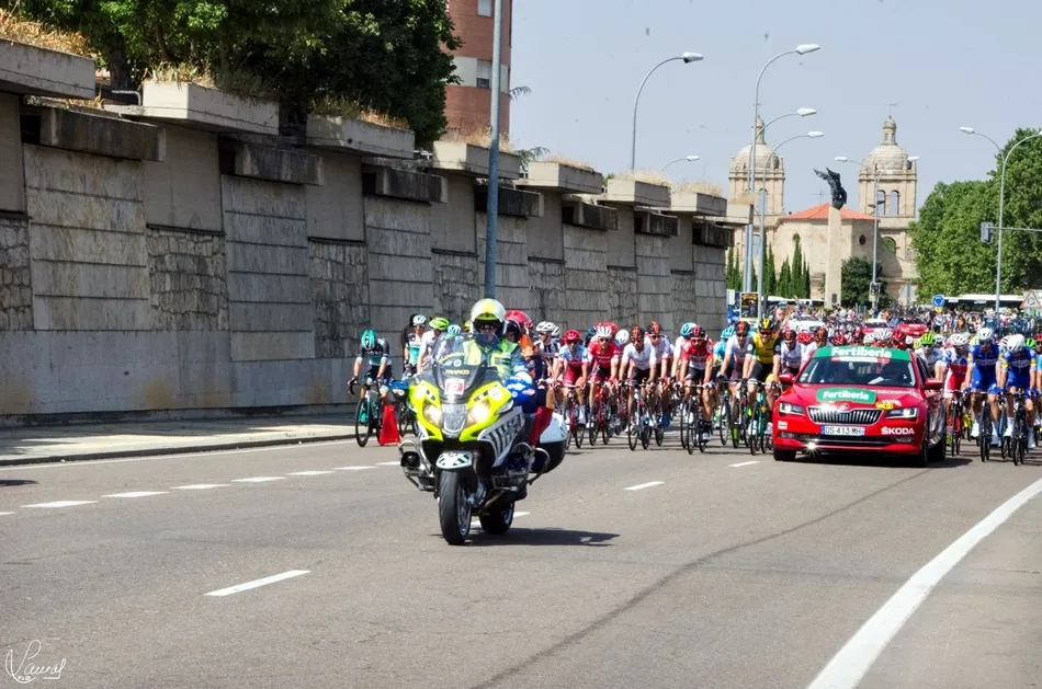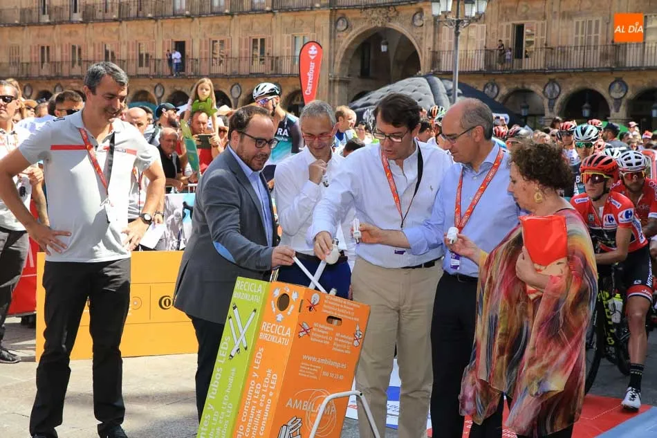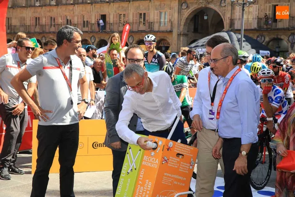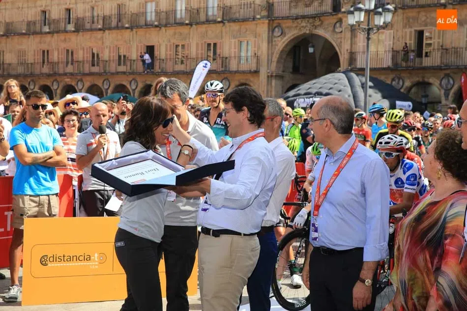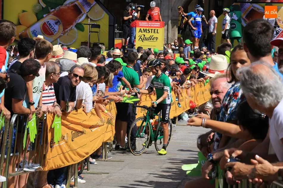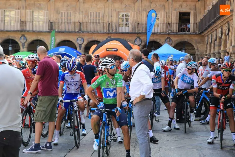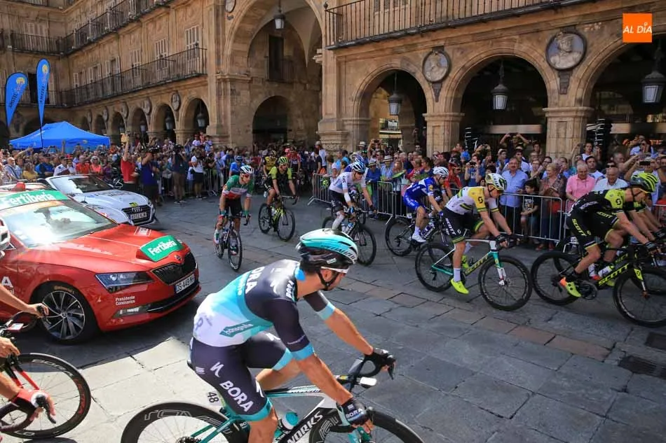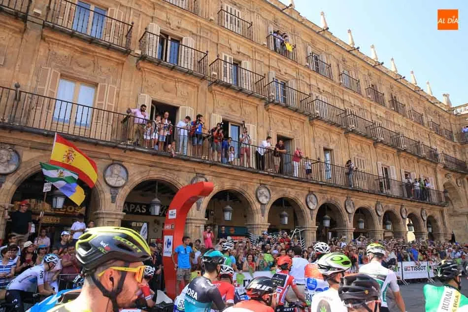 La Plaza Mayor de Salamanca se ha convertido este mediodía en el punto de partida de la décima etapa de la Vuelta Ciclista a España. Después de la primera jornada de descanso, la prueba ha reanudado la marcha con una etapa llana de 177 kilómetros que discurrirá casi en su totalidad por la provincia de Salamanca y finalizará en la localidad zamorana de Bermillo La Vuelta a España se despide de Salamanca con una espectacular salida en la Plaza Mayor | Imagen 1de Sayago.
