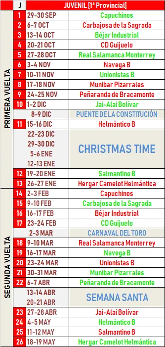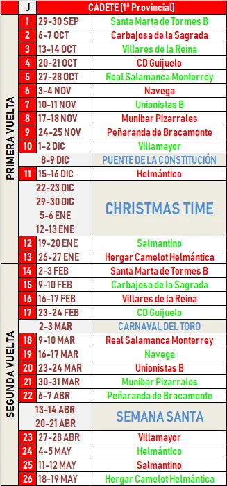 A continuación llegará un largo parón navideño de 1 mes. En lo que queda de enero se disputarán las dos últimas jornadas de la 1ª vuelta, comenzando la 2ª el primer fin de semana del mes de febrero. El primer bloque del año constará de un total de 6 partidos, parando por primera vez el fin de semana de Carnavales (2-3 de marzo).