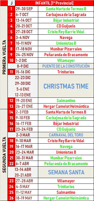Los equipos de la cantera del Ciudad Rodrigo empiezan a conocer sus calendarios   | Imagen 1En lo que respecta a los calendarios ya conocidos, juveniles, cadetes e infantiles del Ciudad Rodrigo volverán a ir de la mano, jugando siempre a la vez en casa o fuera, y en muchas ocasiones contra el mismo rival (omitiendo si son formaciones A ó B). Concretamente, los 3 jugarán en las mismas jornadas frente a Carbajosa de la Sagrada, CD Guijuelo, Navega, Unionistas, Munibar Pizarrales, Peñaranda de Bracamonte, Salmantino y Hergar Camelot Helmántica.