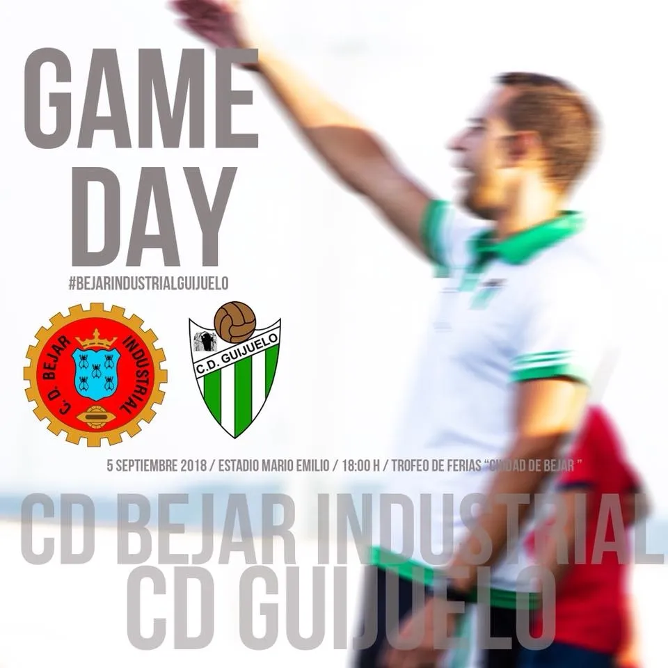 El Guijuelo y el Béjar se enfrentan esta tarde en partido amistoso. Como cada año, el conjunto verdiblanco acude a la cita fútbolística con el Béjar Industrial en el Trofeo de Ferias de la ciudad, que siempre tiene lugar en septiembre como preámbulo de los festejos.